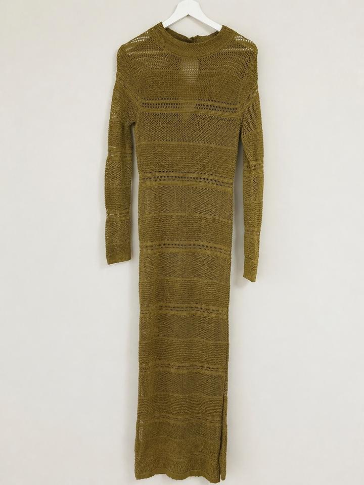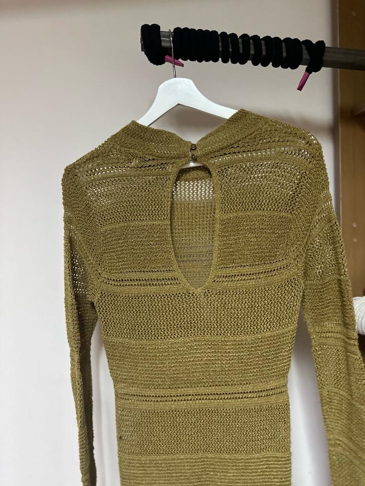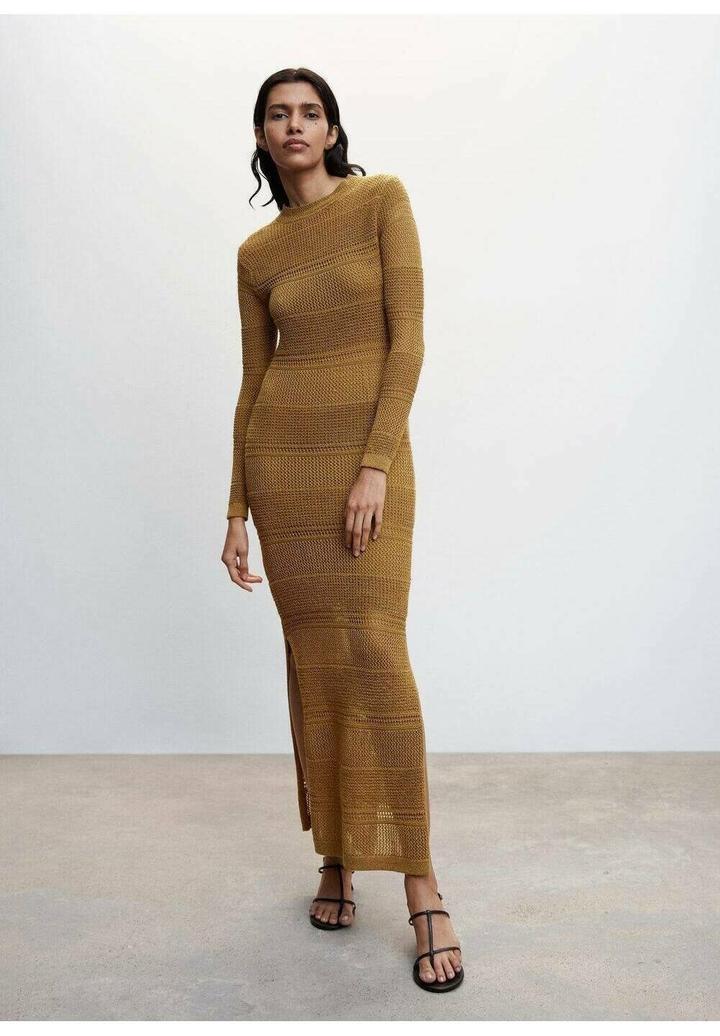 Вязаное платье Mango в тёплом оливковом оттенке 🤎 Лёгкая ажурная вязка, приталенный силуэт и длина макси красиво вытягивают фигуру. Длинный рукав и минималистичный дизайн делают его универсальным: можно носить как самостоятельное платье или поверх базового слоя. Идеально для отпусков и стильных городских образов. 🩷 Размер маломерит, лучше всего подойдет на S Артикул: 586387