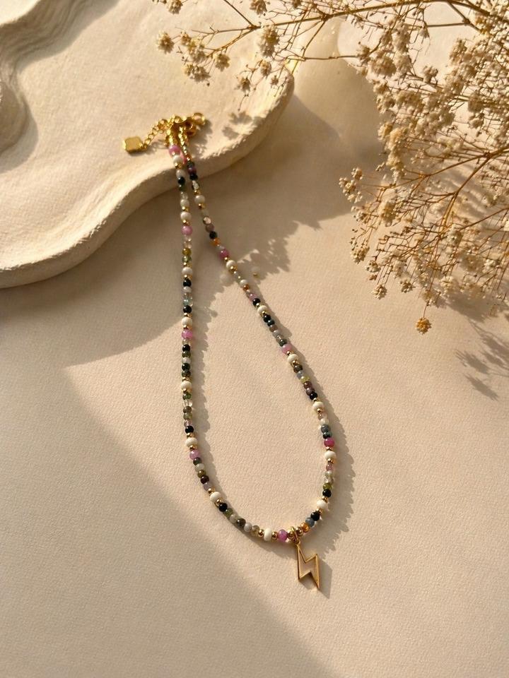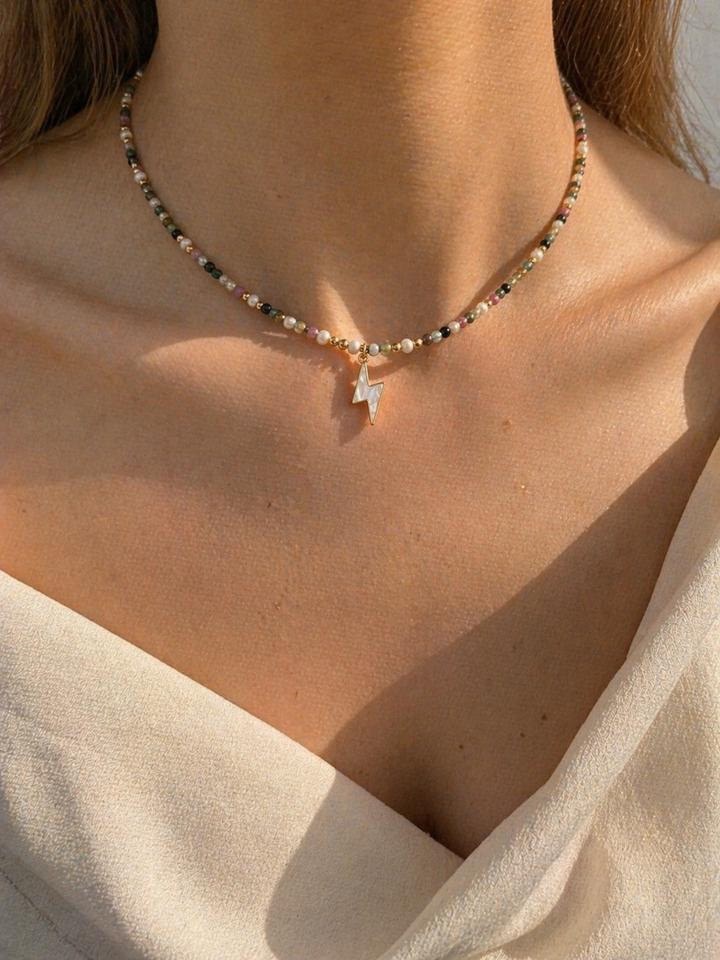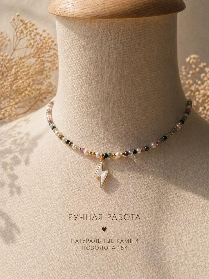 Натуральные камни и жемчуг в сочетании с перламутровой молнией — украшение, которое цепляет с первого взгляда. Лёгкое, но выразительное. Минимализм с акцентом. Кулон из перламутра мягко переливается на свету, а позолоченная фурнитура добавляет тёплого сияния. Идеально ложится по шее и подчёркивает линию ключиц. Собран вручную. В единственном экземпляре. Артикул: 586402