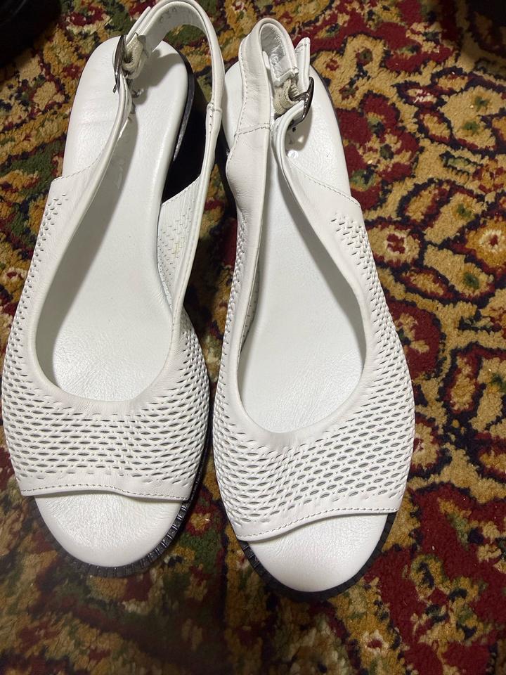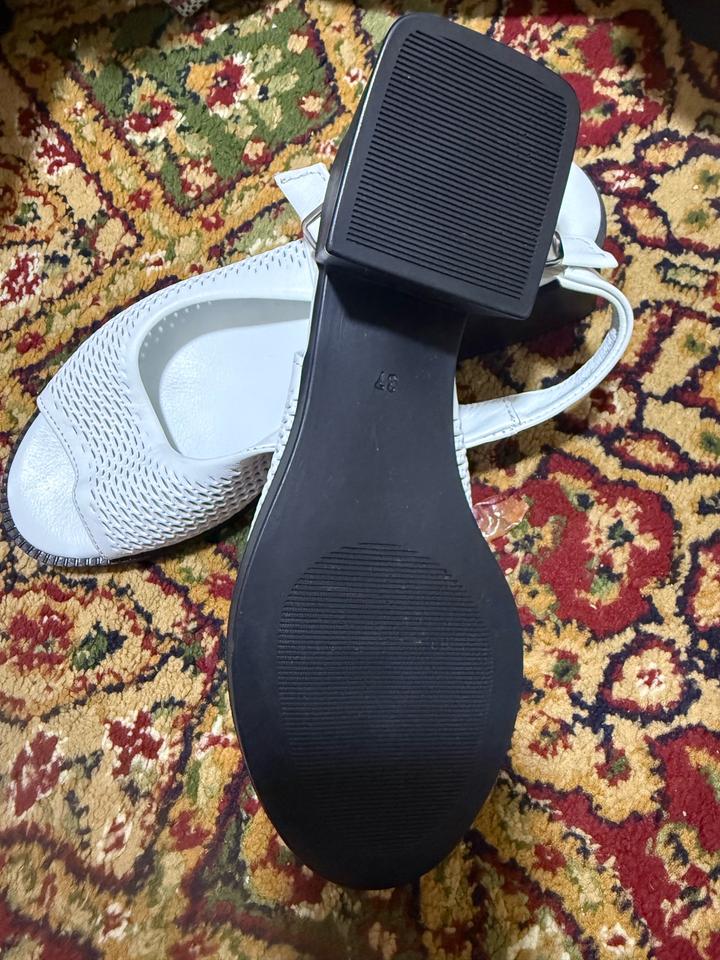Кожаные босоножки 37 размера , каблук низкий, что позволит легко передвигаться в течение всего дня Артикул: 586415
