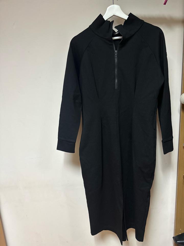 Чёрное платье BELKOVNA, лаконичный минимализм. Приталенный крой, плотный трикотаж, хорошо держит форму. Воротник-стойка с молнией — можно регулировать вырез, есть кариманы. Универсально: подойдёт как на каждый день, так и для более собранных образов. Ткань хорошо тянется Артикул: 586424