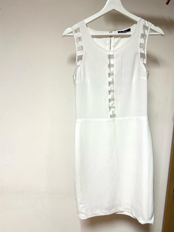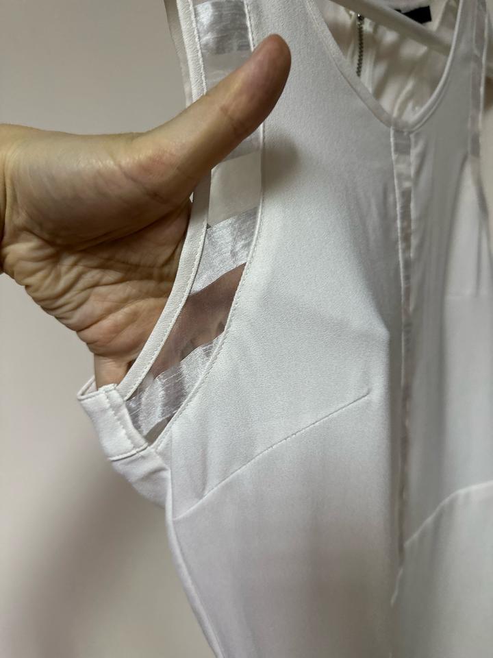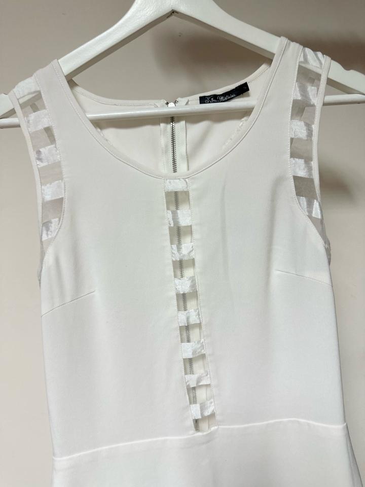Белое платье в стиле Calvin Klein. Прямой силуэт, длина мини. Лаконичный крой с акцентом на прозрачные вставки спереди и по плечам — смотрится нежно и стильно. Застёжка на молнии сзади. Подойдёт как для повседневных образов, так и на выход. У юбки подклад - не просвечивает Артикул: 586429