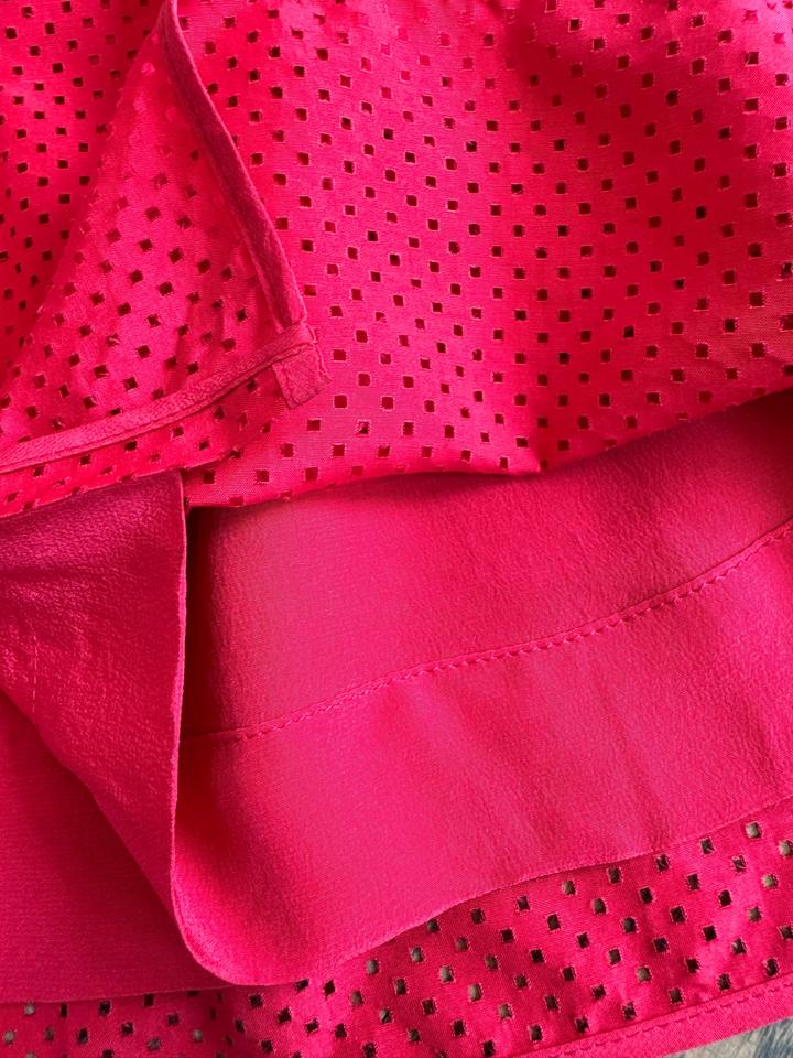 Перфорированная юбка Fendi. Размер 44. Пояс затягивается. Молния спереди. Длина чуть ниже колен при росте 165-168. 100% шелк. Цвет фуксия Артикул: 586459