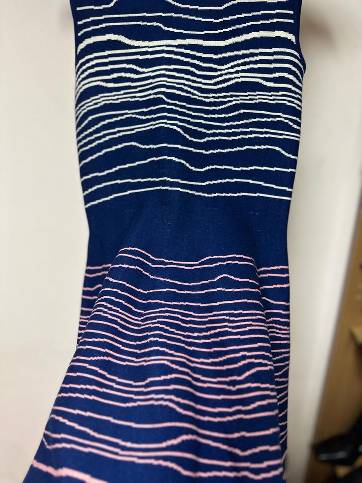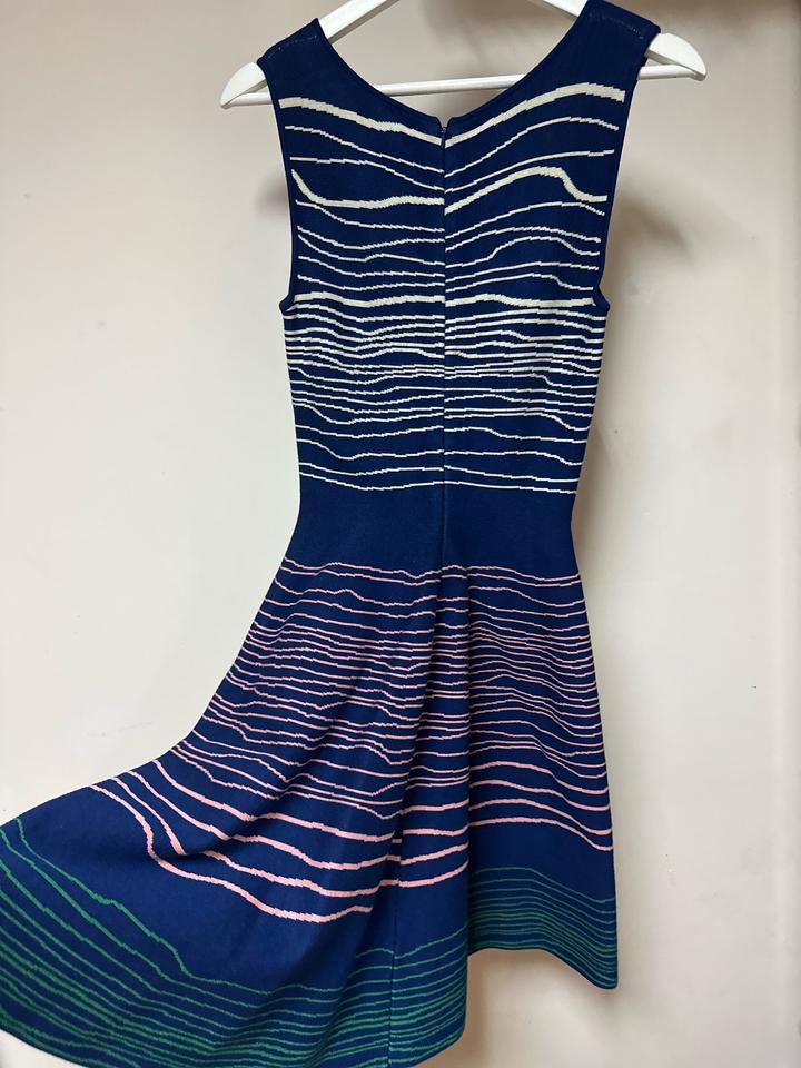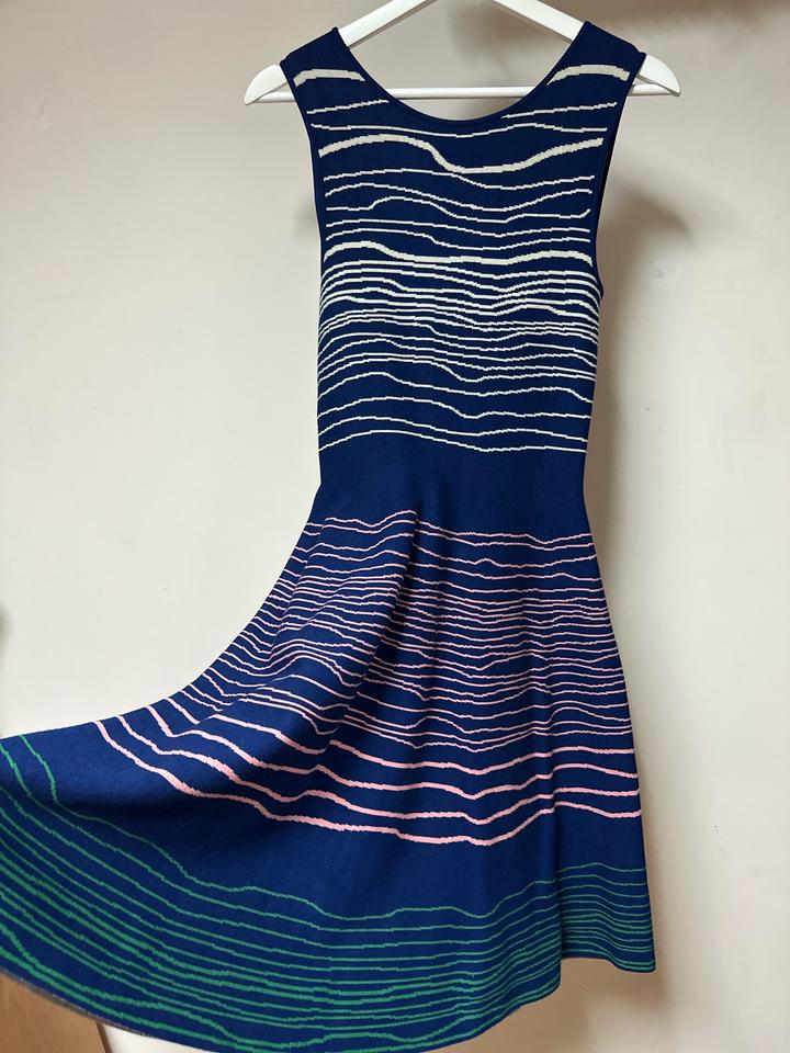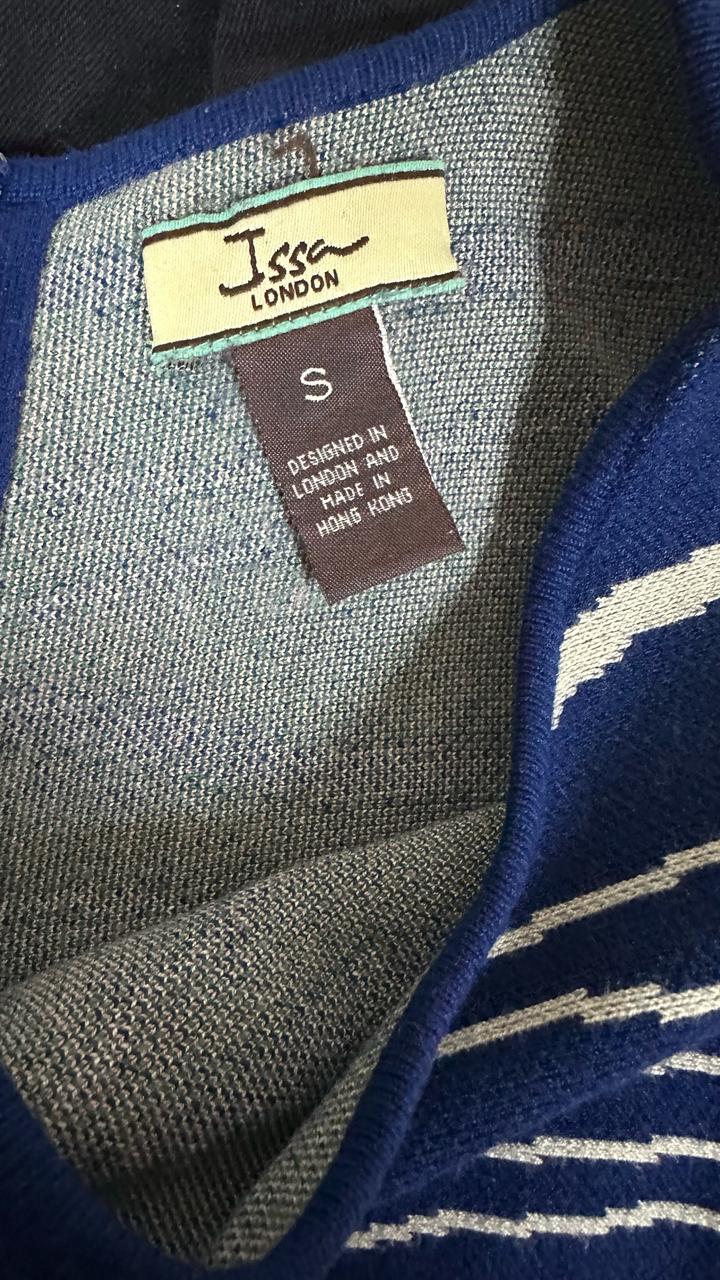 Платье трикотажное Issa London,. Эффектная модель с приталенным силуэтом и расклешённой юбкой. Глубокий синий цвет с абстрактным полосатым принтом. Трикотажная ткань тянется, комфортная посадка. Состав: rayon и lycra. Отлично подчёркивает фигуру, подойдёт как на выход, так и на каждый день. 😍 Бренд стал суперпопулярным после того, как Кейт Миддлтон появилась в платье Issa на помолвке с принцем Уильямом Артикул: 586478