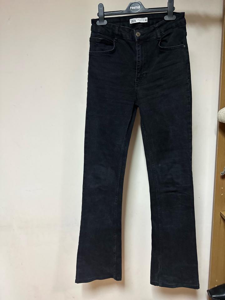 Джинсы ZARA, размер EUR 38. Высокая посадка, крой bootcut/слегка расклёшенные от колена — красиво вытягивают силуэт. Универсальная база на каждый день. На высокий рост Артикул: 586487