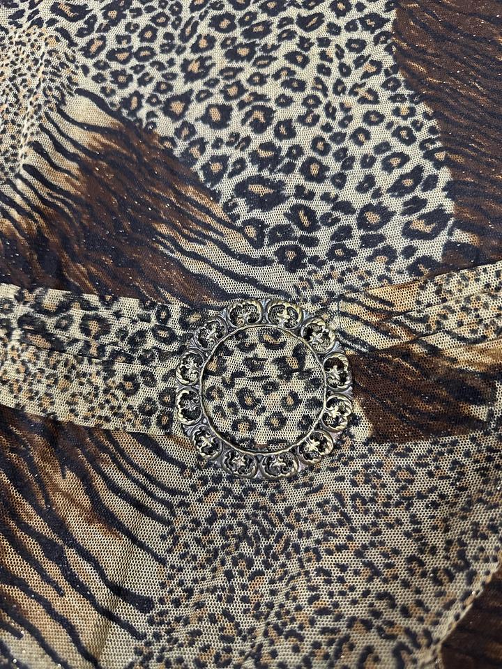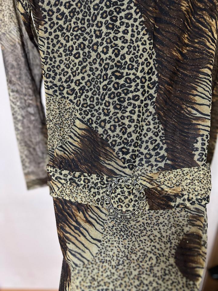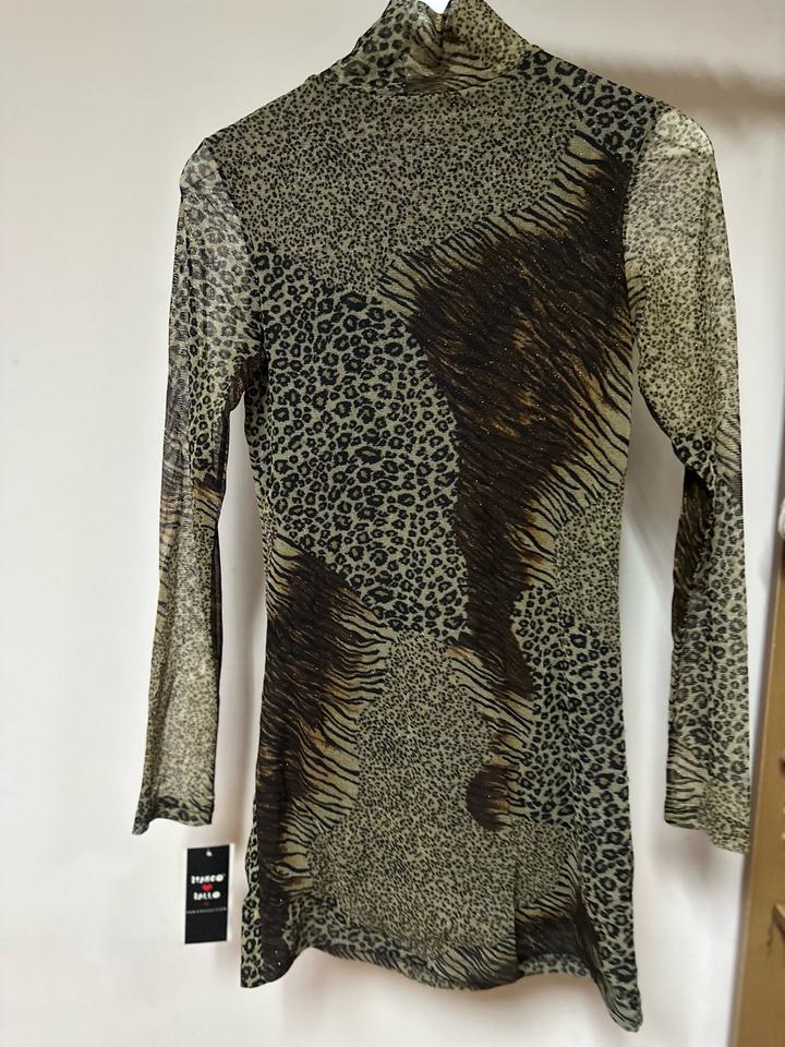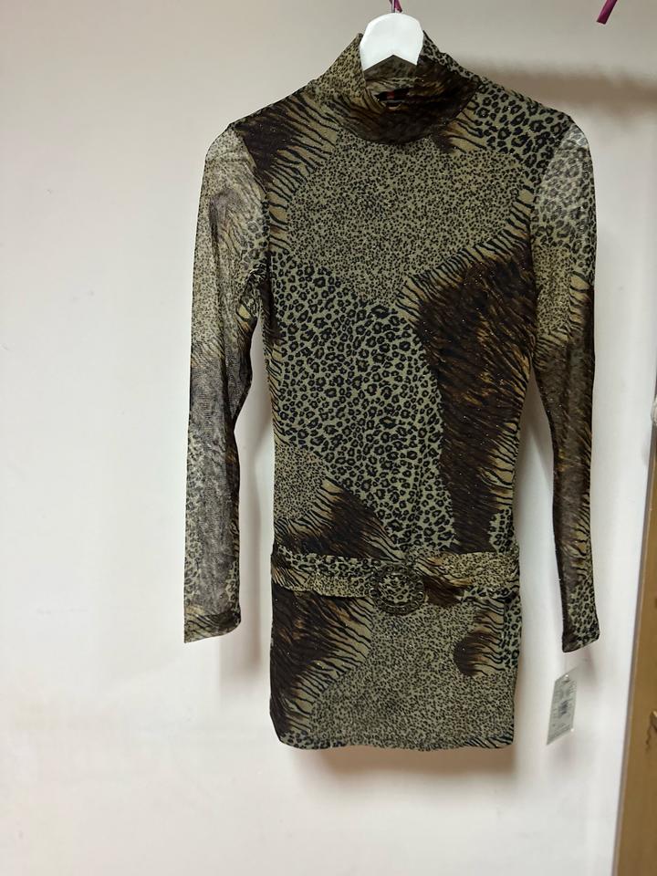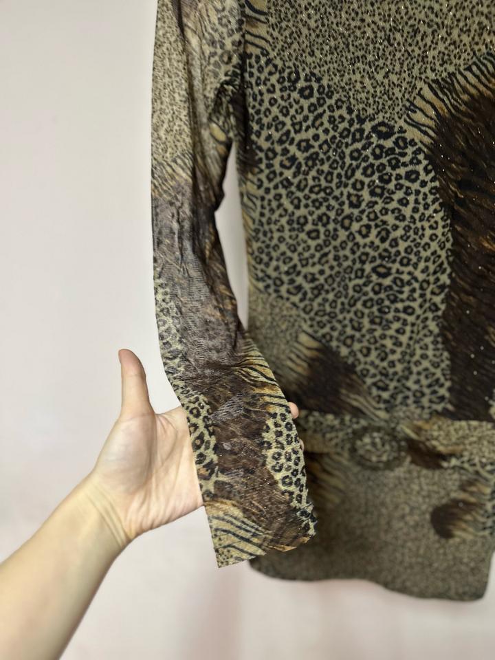 Винтажное платье Bianco Ballo с анималистичным принтом 🐆 Облегающий силуэт, высокий ворот и длинный рукав — в духе 90-х/00-х. Мягкая эластичная сетчатая ткань , акцентный пояс на талии с пряжкой. Смотрится дерзко и женственно. Новое, с биркой. Идеально для винтажных образов. Артикул: 586529