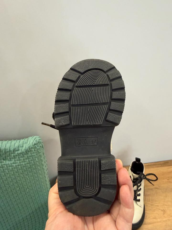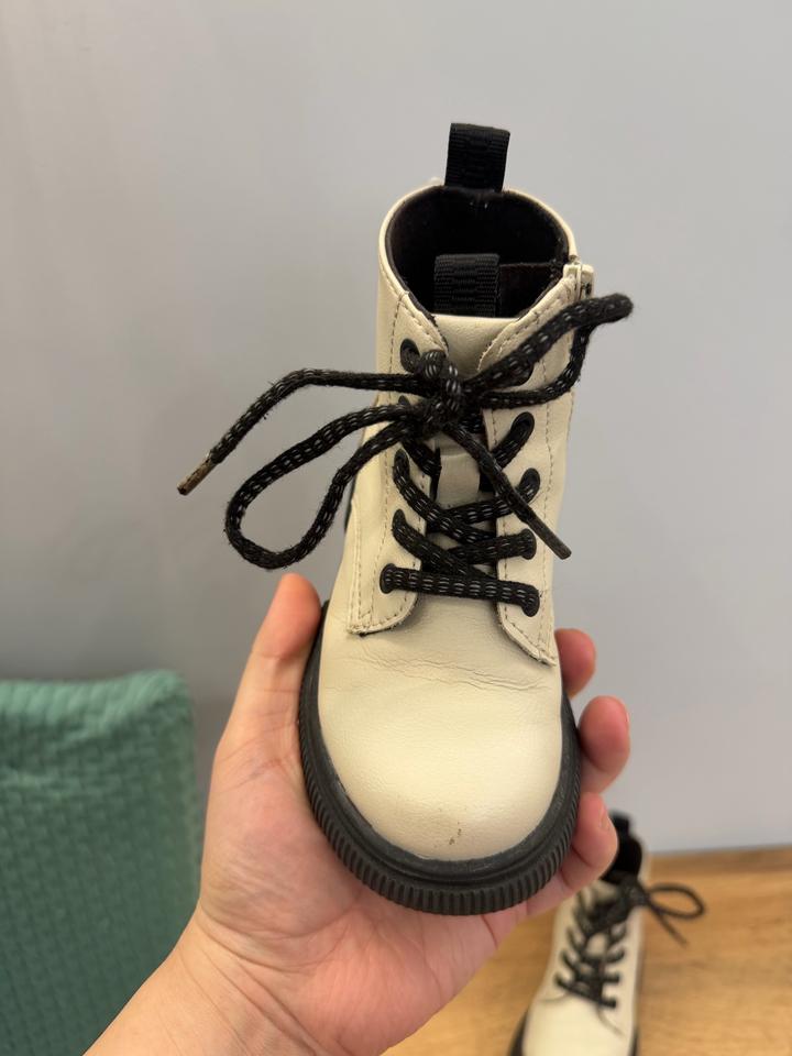 Красивые молочные ботинки Zara Доча носила их недолго, видно по подошве У них сломался бегунок на одном ботинке В любом обувном вам могут поменять Покупала за 25 тыс Из-за бегунка и маленькой царапины на одном носке, продаю дешево Артикул: 586561