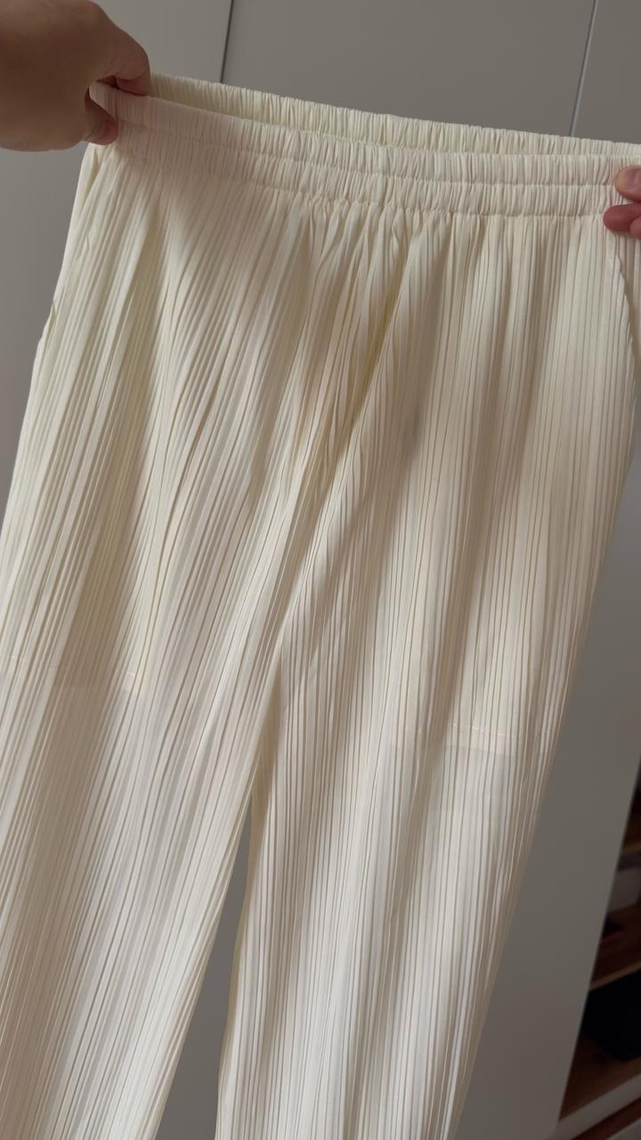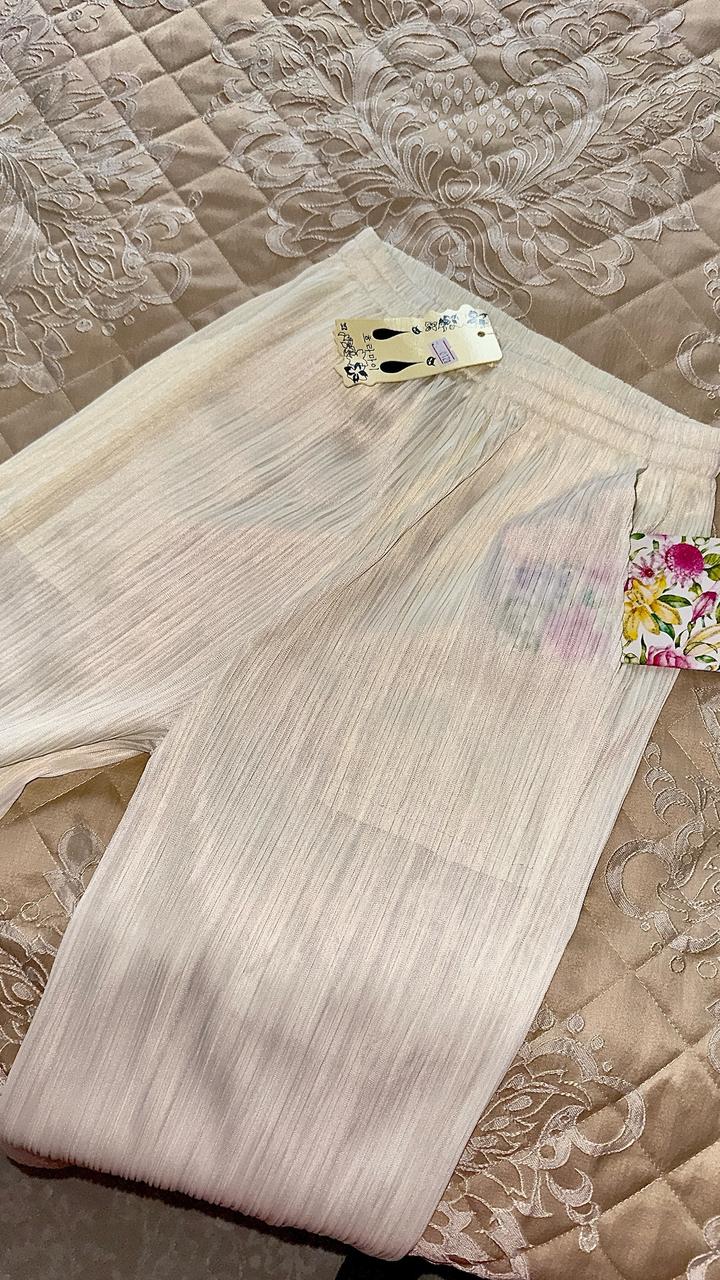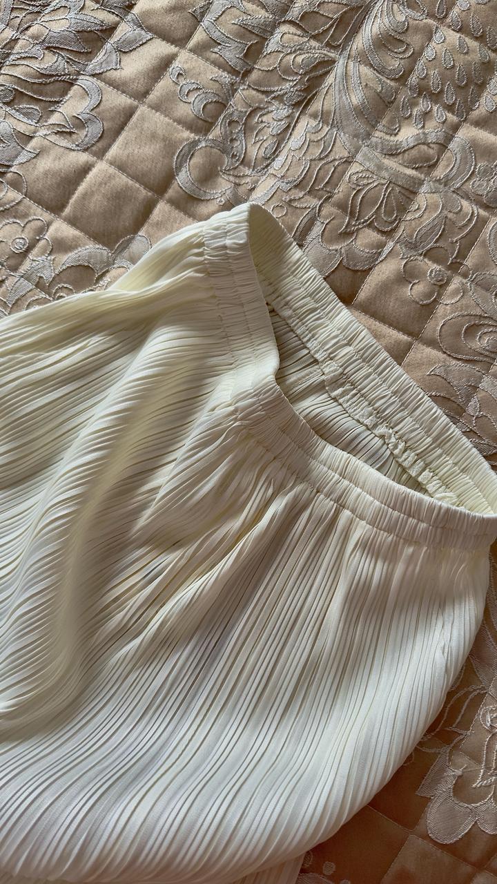 Новые плиссированные летние брюки в цвете айвори. Очень легкие, воздушные. Свободный крой, не сковывает движения. Важно: из-за лёгкости ткани брюки немного просвечивают — идеально с телесным или бесшовным бельём. Артикул: 586572