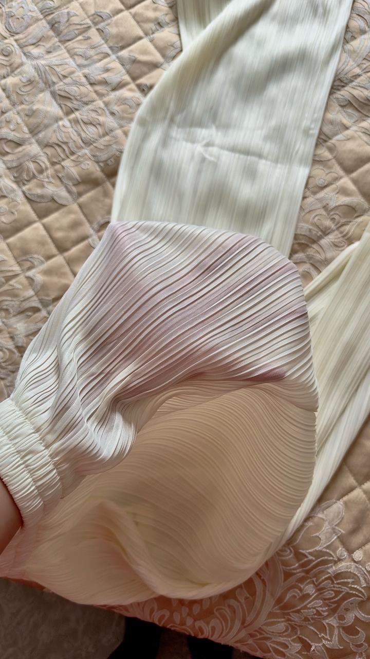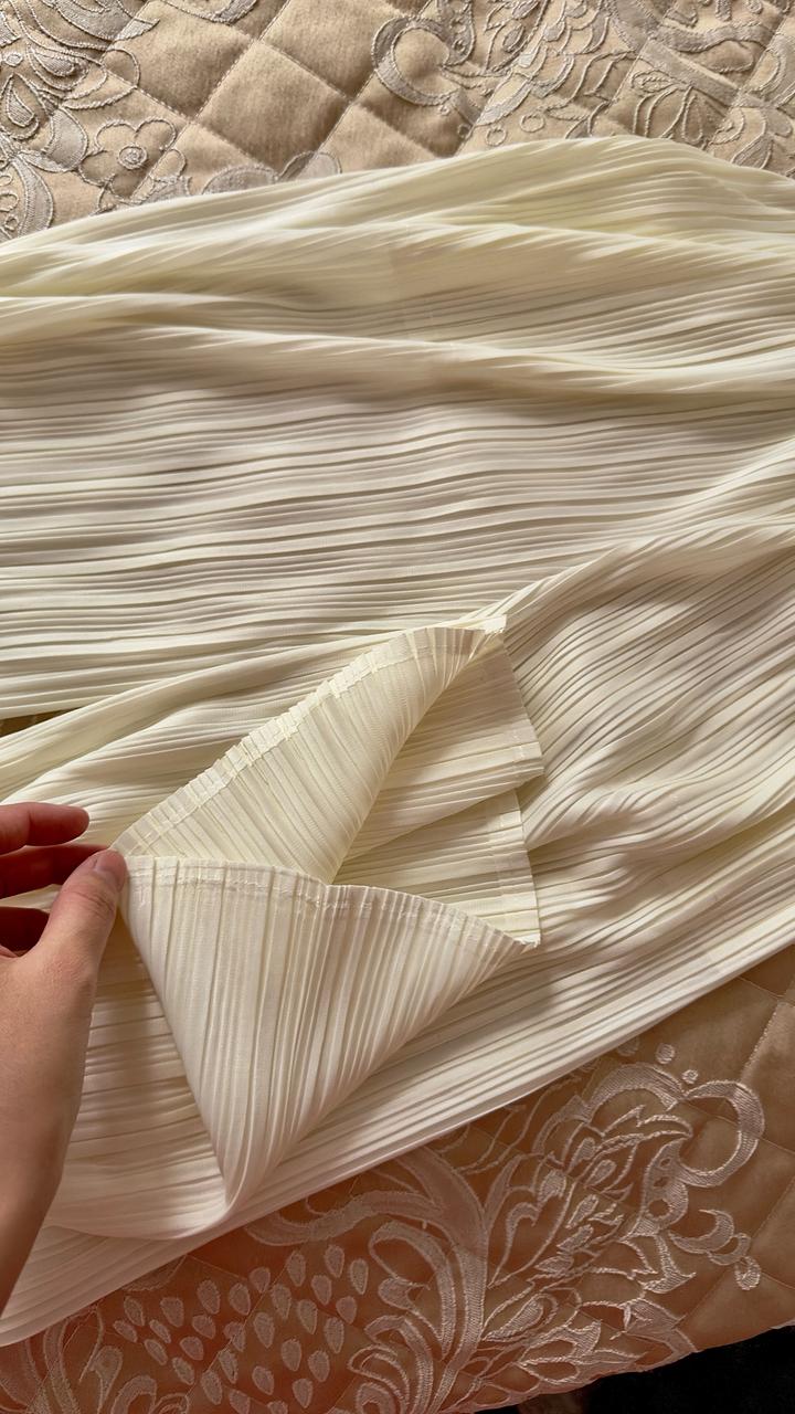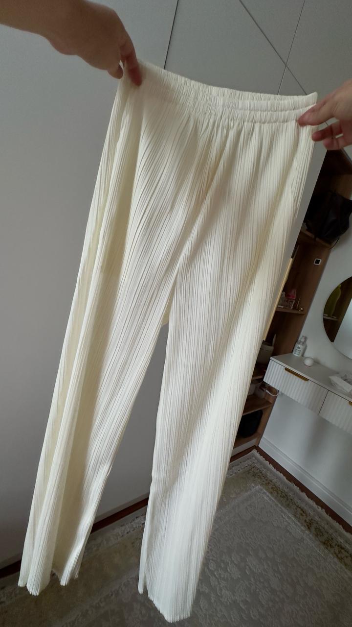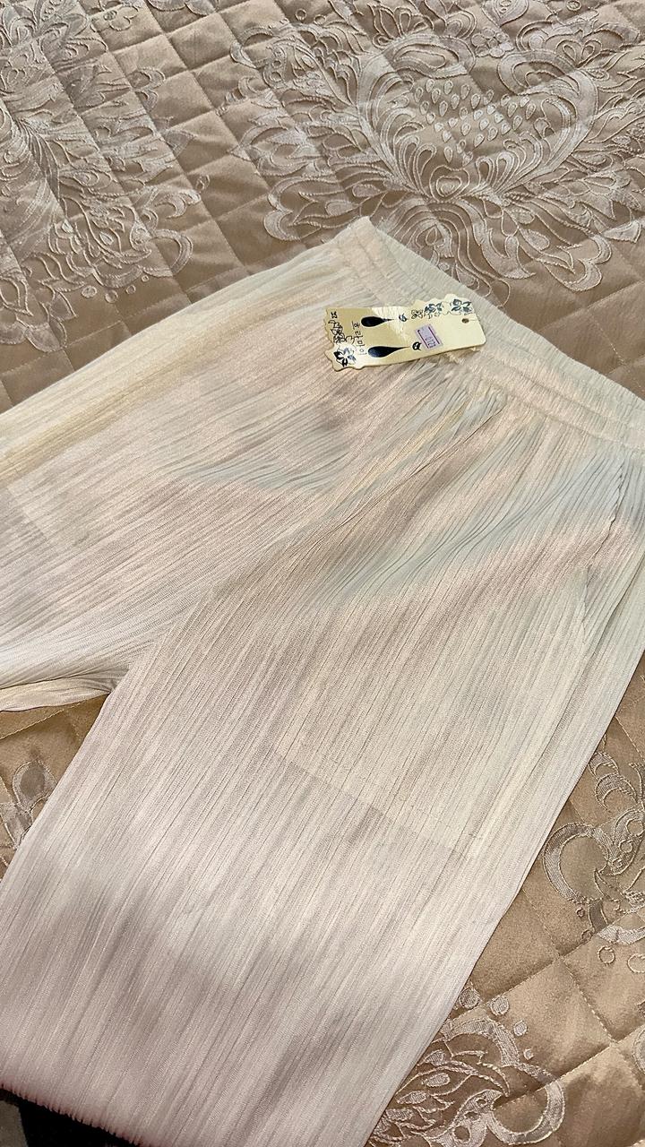 Новые плиссированные летние брюки в цвете айвори. Очень легкие, воздушные. Свободный крой, не сковывает движения. Важно: из-за лёгкости ткани брюки немного просвечивают — идеально с телесным или бесшовным бельём. Артикул: 586572