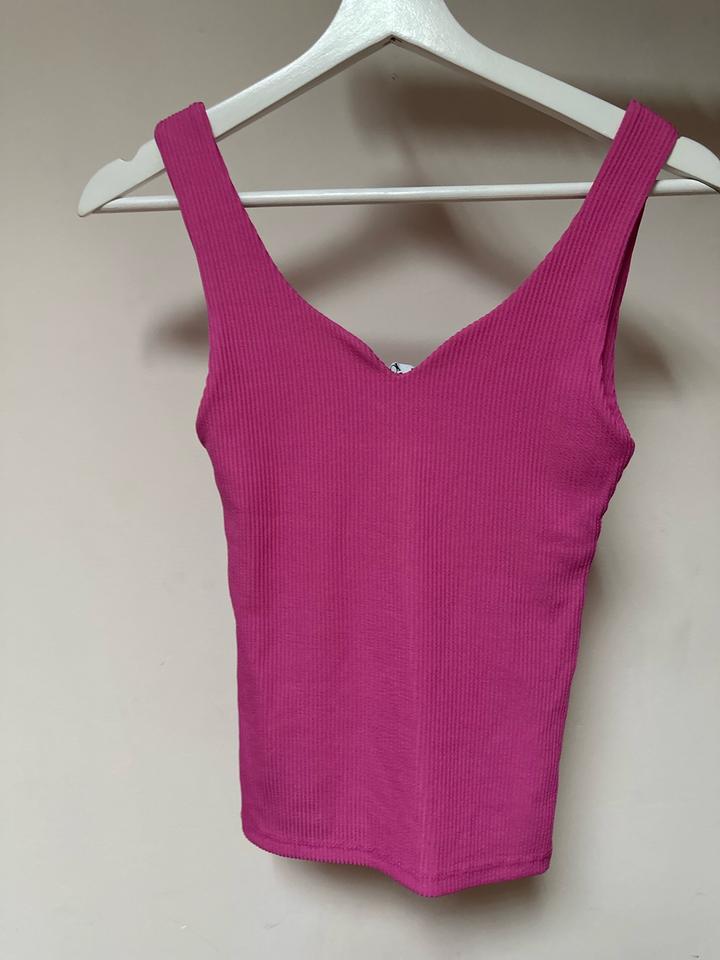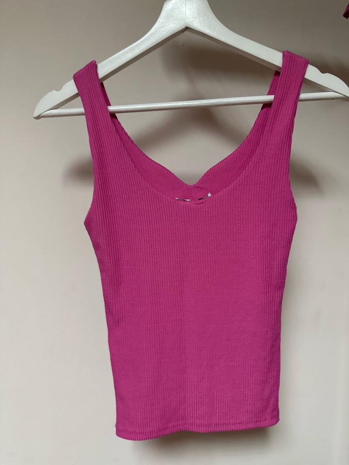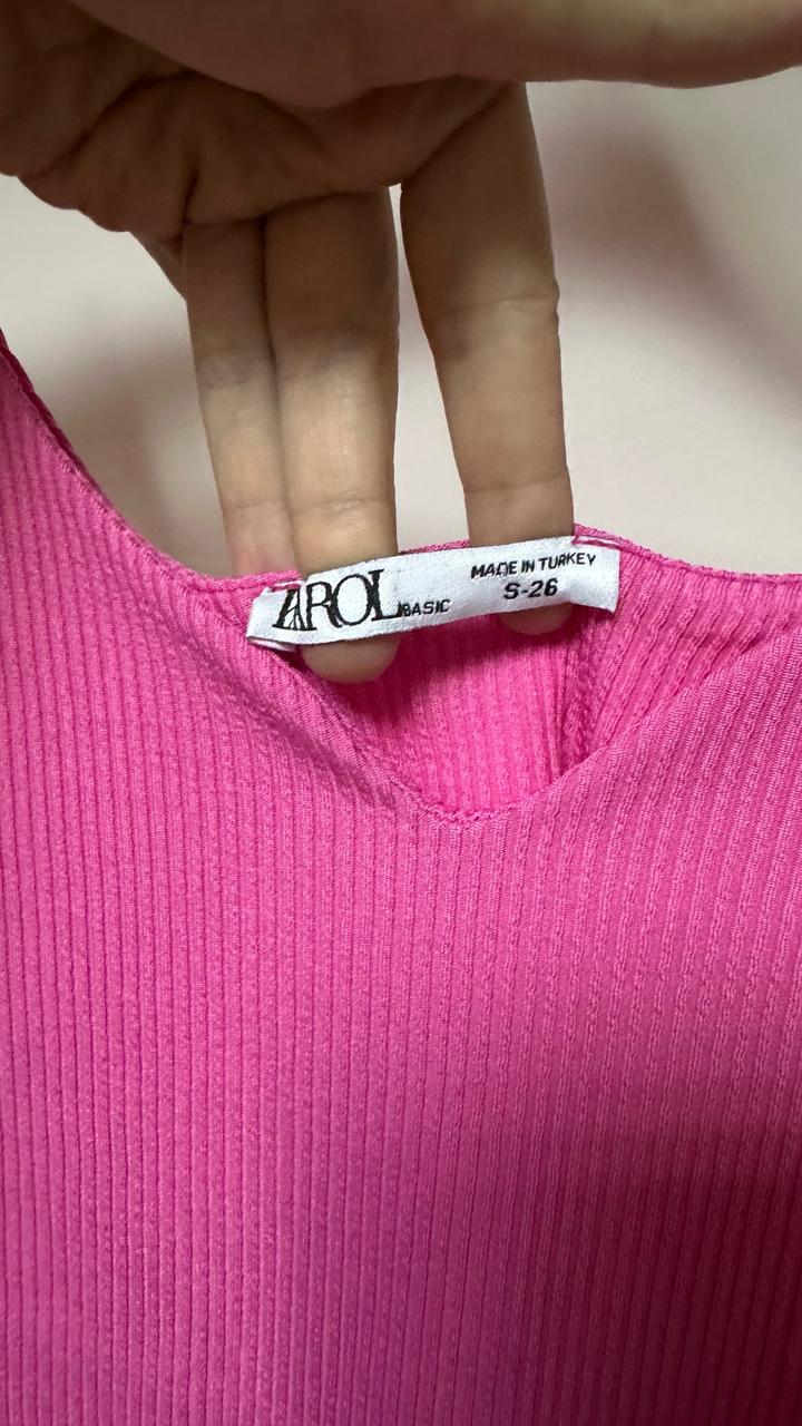Яркий топ KAROL 💖 Стильный базовый топ насыщенного розового оттенка (фуксия). Выполнен из эластичной ткани в рубчик, красиво садится по фигуре и подчёркивает силуэт. Идеально под джинсы, юбки или под пиджак — универсальная вещь на лето и для многослойных образов. 🩷 На размер XS-S Артикул: 586577