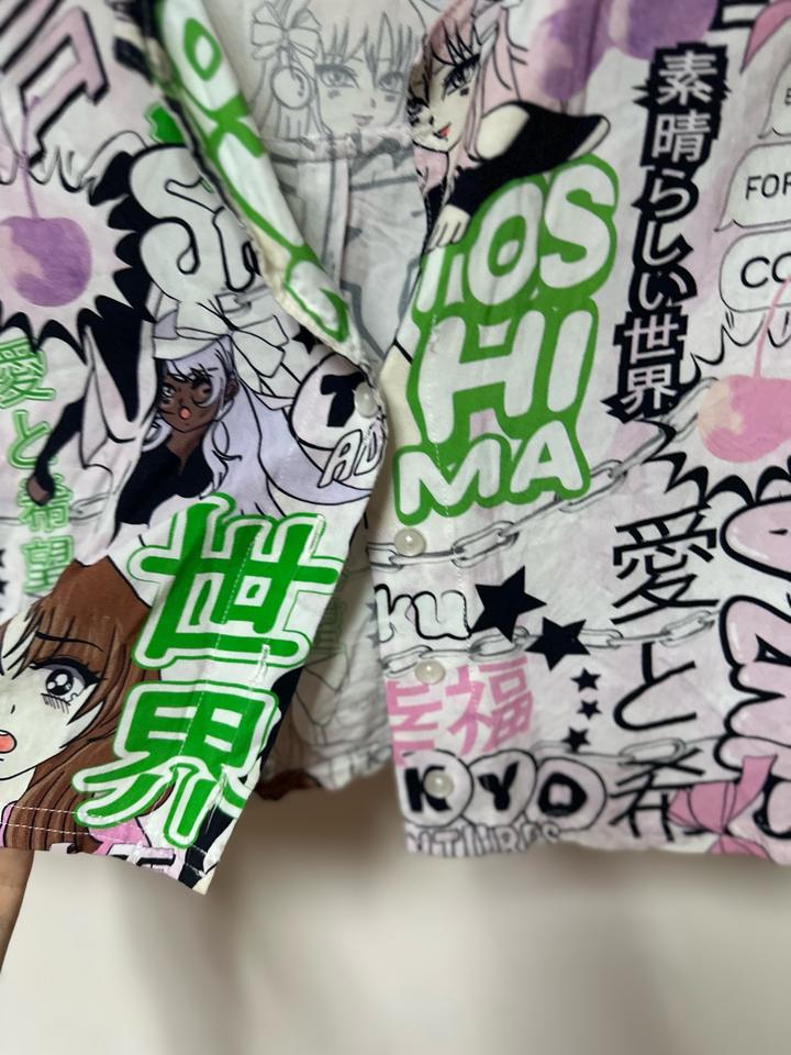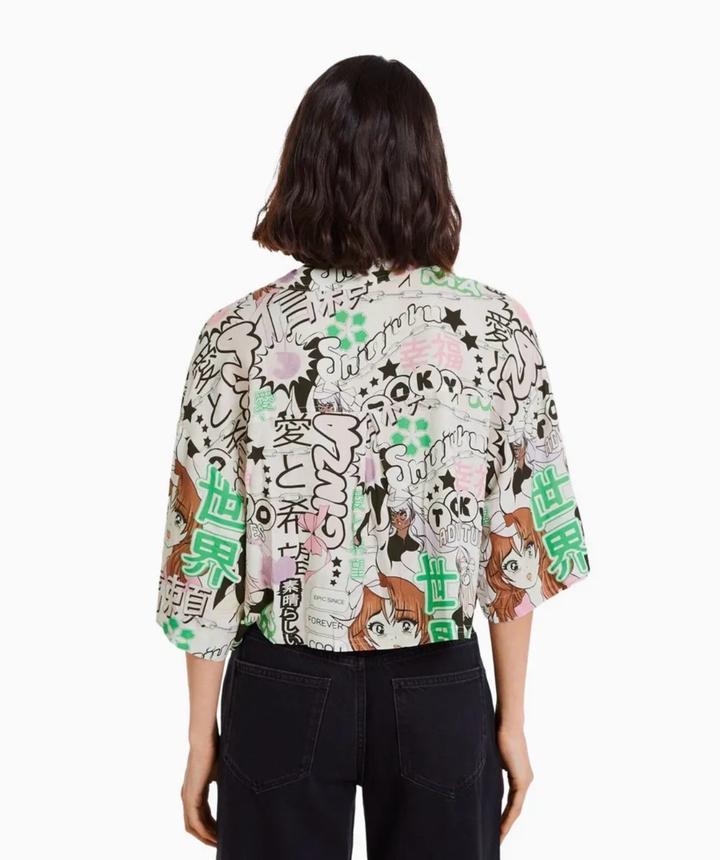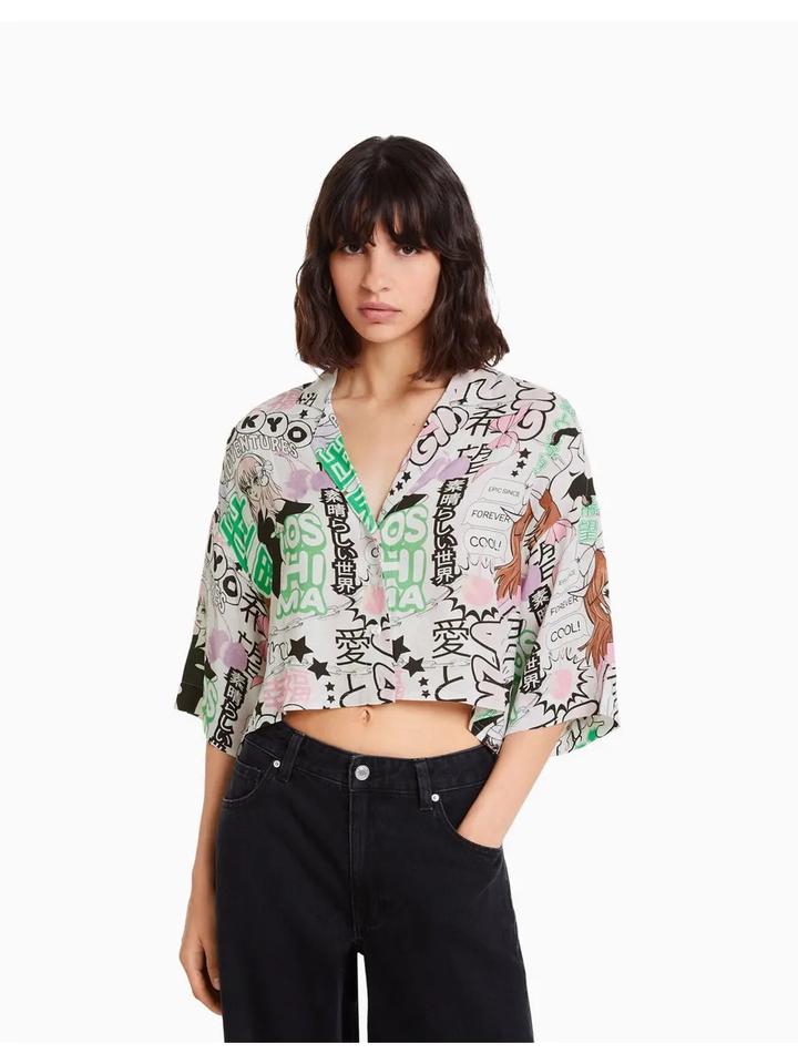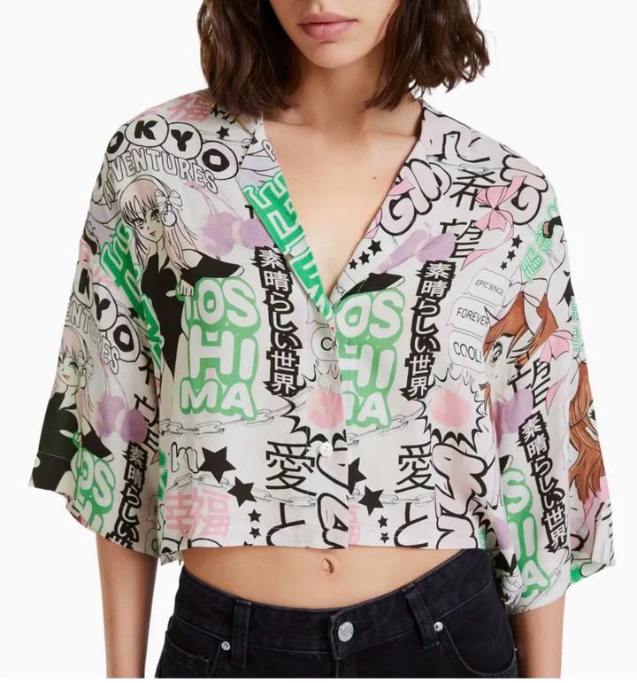 💥Короткая рубашка с ярким графичным принтом в стиле manga/anime — трендовая вещь, которая сразу делает образ заметным. Свободный крой, укороченная длина, лёгкая ткань — идеально на лето. ▪️ Состав: вискоза (приятная к телу, дышащая) Круто смотрится с джинсами с высокой посадкой, шортами или юбкой. Подойдёт для стильных повседневных образов и streetwear. Артикул: 586581