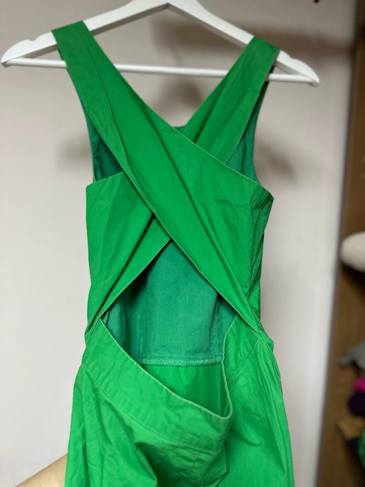 💚Яркое зелёное платье-сарафан с эффектной открытой спиной и перекрещёнными бретелями. Приталенный верх и свободная юбка красиво садятся по фигуре. Лёгкая хлопковая ткань — идеальный вариант на лето. Артикул: 586668