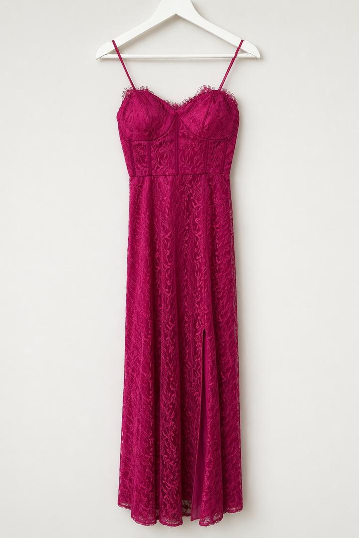 😍Невероятной красоты эффектное вечернее платье в насыщенном малиновом оттенке от французского бренда 🇫🇷Manoukian. Кружевной корсет с чашками без бретелей красиво подчёркивает фигуру, струящаяся юбка с разрезом добавляют женственности. Идеально для мероприятий и выходов. Артикул: 586693