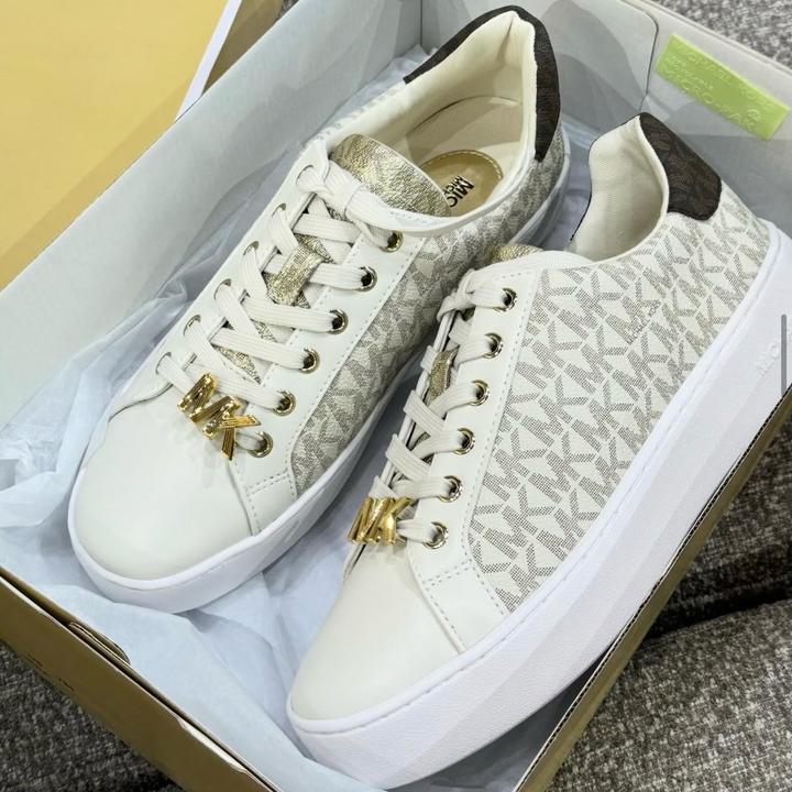 Женские кеды Michael Kors в монограмме. 💯 оригинал. 💯 кожа. В белом цвете. Носила 3 раза! Покупала в бутике. 39 размер. Артикул: 586701