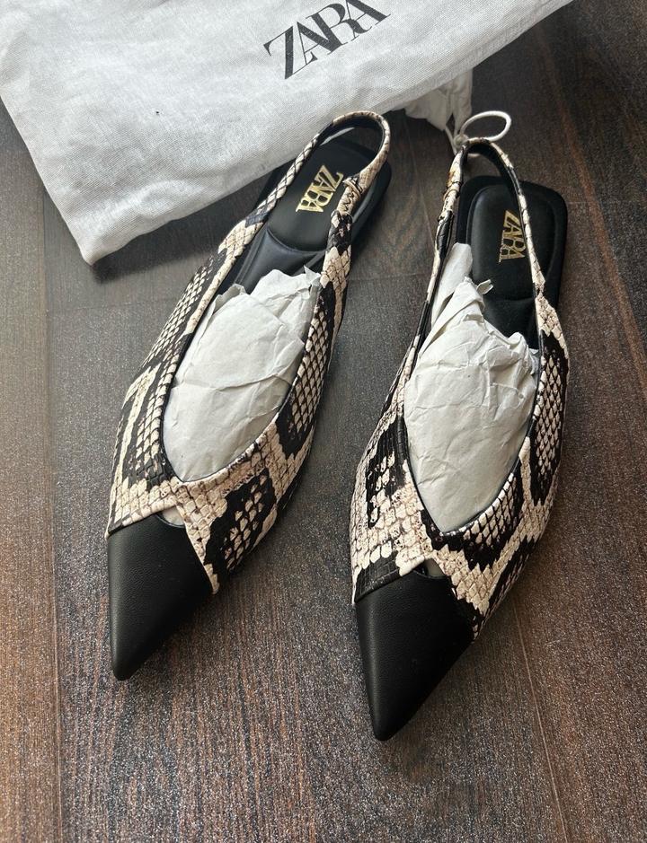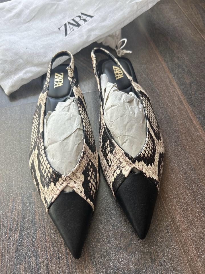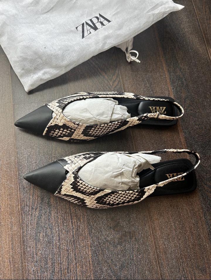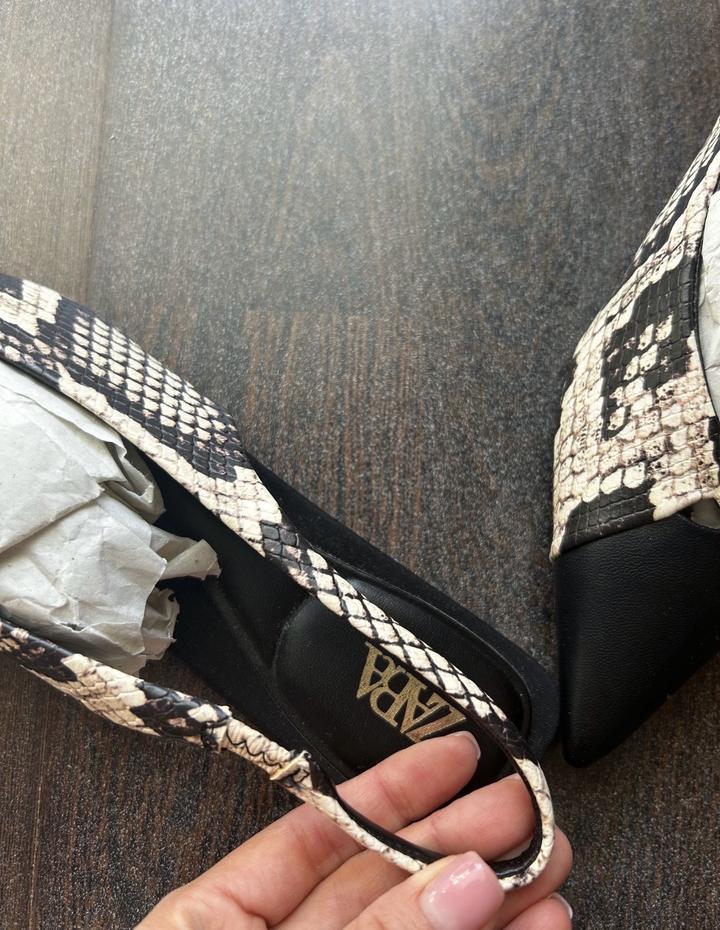 Продаются новые мюли с острым носом в змеиный принт, бренд Zara , размер 37. Имеется пакет пыльник. Продаем , так как не подошел размер. Артикул: 586826
