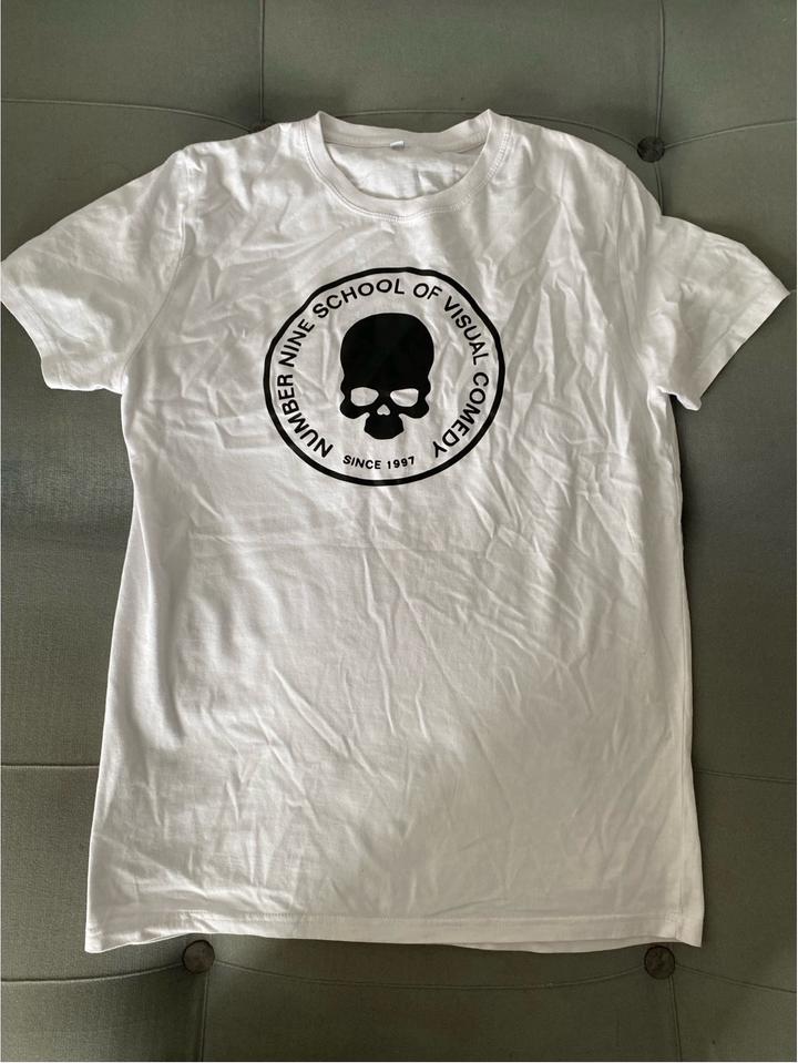 Архивная футболка от легендарного японского бренда Number (N)ine периода Такахиро Мияшиты. Коллекция «School of Visual Comedy». Один из самых узнаваемых принтов бренда с черепами и эстетикой 2000-х. Артикул: 586945