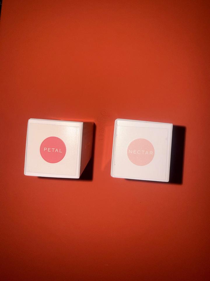 Румяна - оттенок Petal (Dusty nude rose). Размер petite. Хайлайтер - оттенок Nectar (Glassy golden peach). Размер petite. Розничная цена 26$ каждого средства. Артикул: 586948