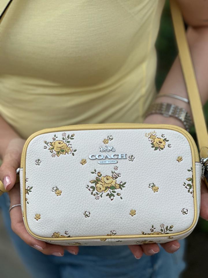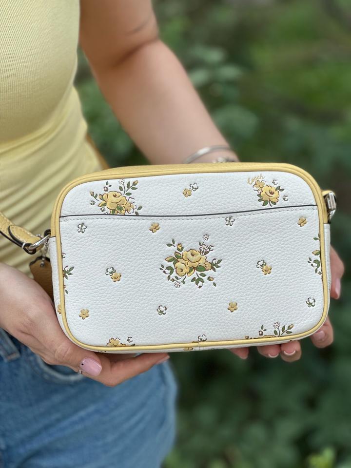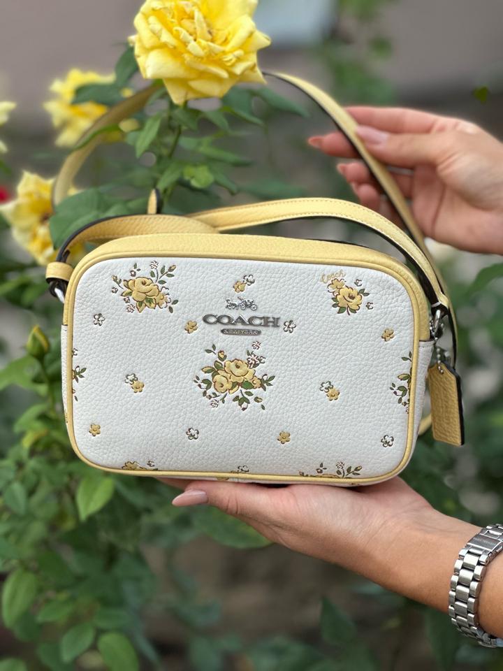 Сумка кросс-боди Coach Mini Jamie с цветочным принтом из зернистой кожи •Цвет: белый/желтый •Параметры: 19,7*12,7*6,3 см Артикул: 587012