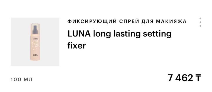 Фиксирующий спрей для макияжа Luna Long Lasting Setting Fixer 100 мл Пользовалась около недели, не подошел моему типу кожи. Срок до 07.2028 Артикул: 587015