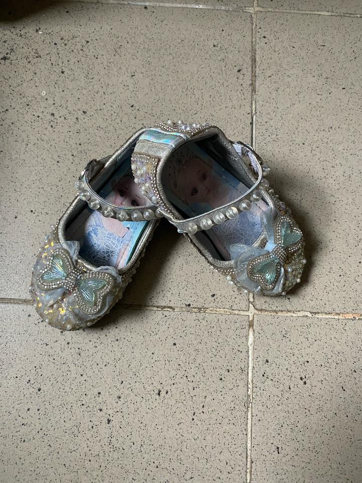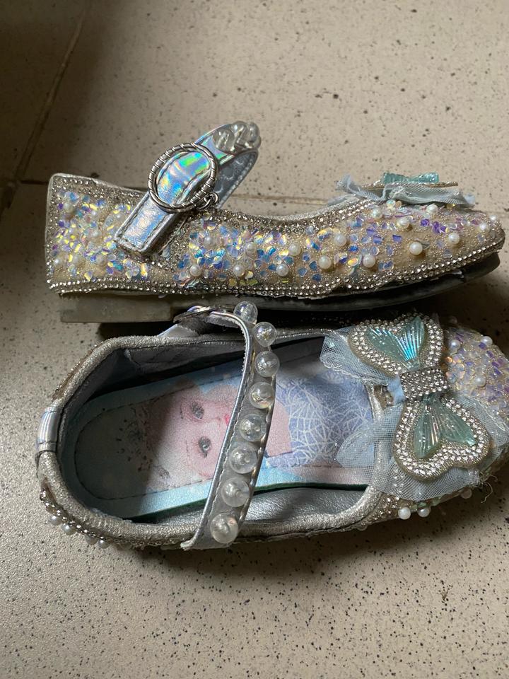 Блестящие Эльза туфельки для девочек примерно 3-4 годика. Носили 2-3 раза на мероприятие. Артикул: 587032