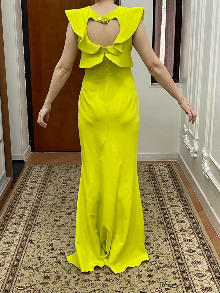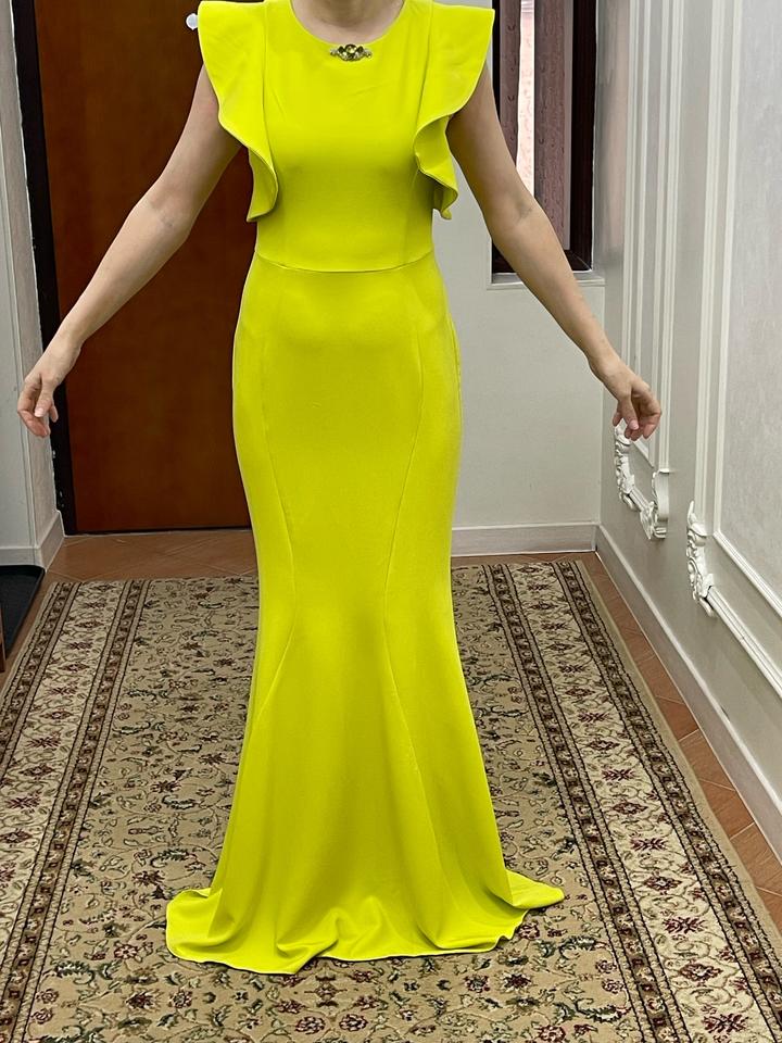 Платье вечернее в пол рыбка Турция цвет лимонный шикарно подчёркивает фигуру Артикул: 587120