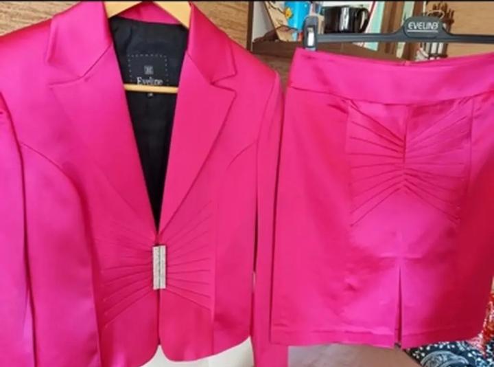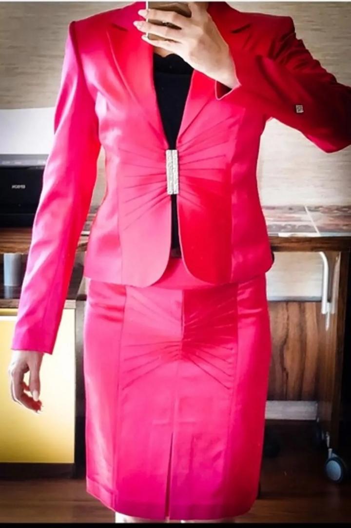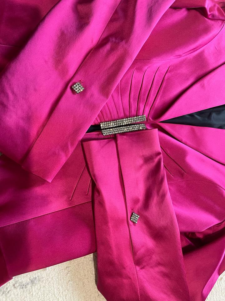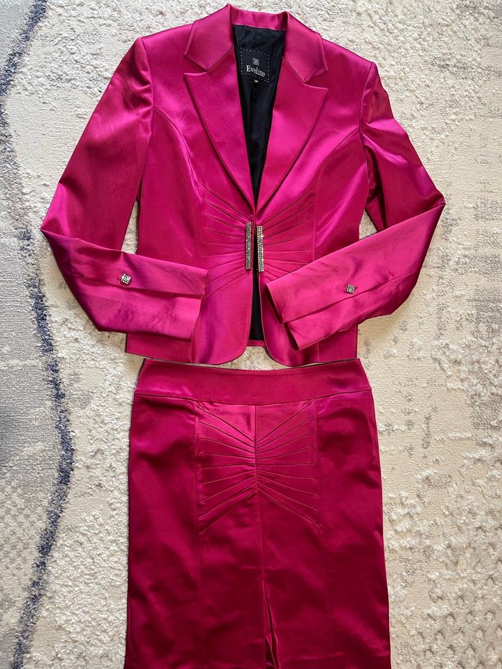 Юбочный костюм Турция люкс из королевского атласа стразы сваровские цвет фуксия Артикул: 587151