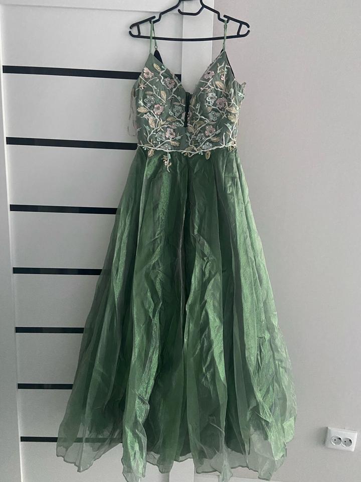Лиф украшен ручной вышивкой и бусинами, пышная юбка из фатина. Цвет — благородный изумруд. Очень нежное и нарядное, идеально подойдет на выпускной, свадьбу или юбилей. Одевала только 1 раз Артикул: 587166