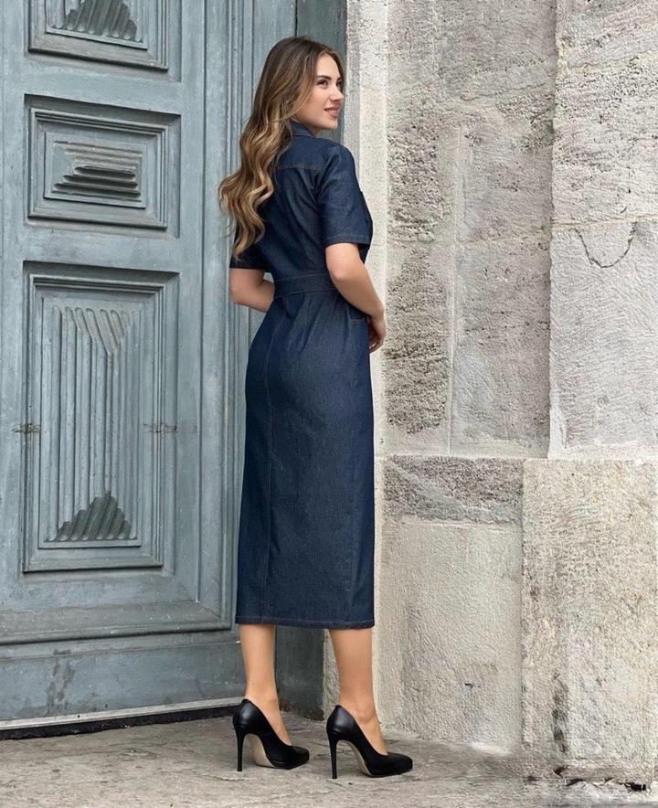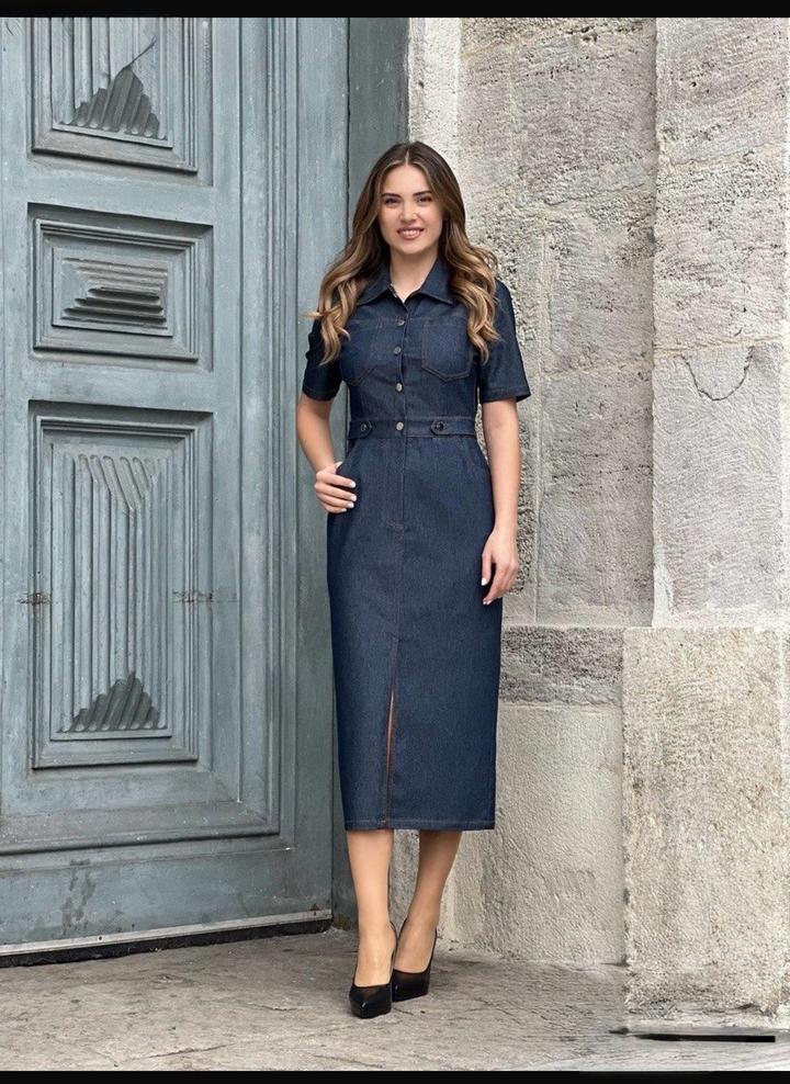 Обалденное джинсовое платье Материал стретч Сядет на любую фигуру Длина миди На любое мероприятие Спереди на заклепках Размер на юбке спереди По бокам карманы Джинса не красит Артикул: 587190