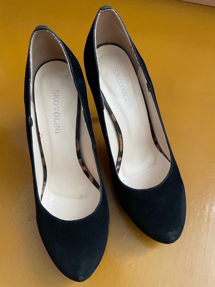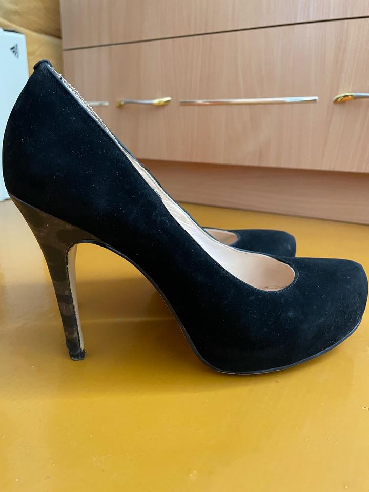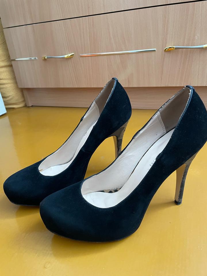 Элегантные черные замшевые туфли-лодочки на шпильке.39.5