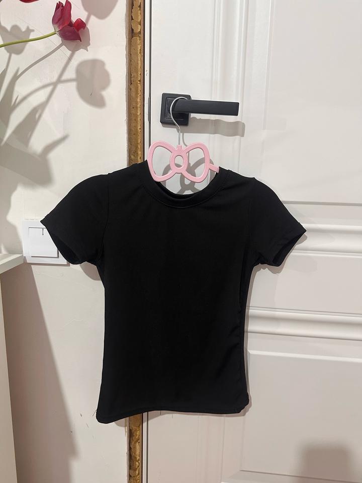 Обычная черная футболка, немного утягивает, примерила 1 раз но не носила , размер S но подходит и на М Артикул: 587402