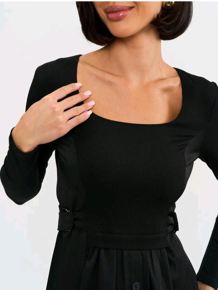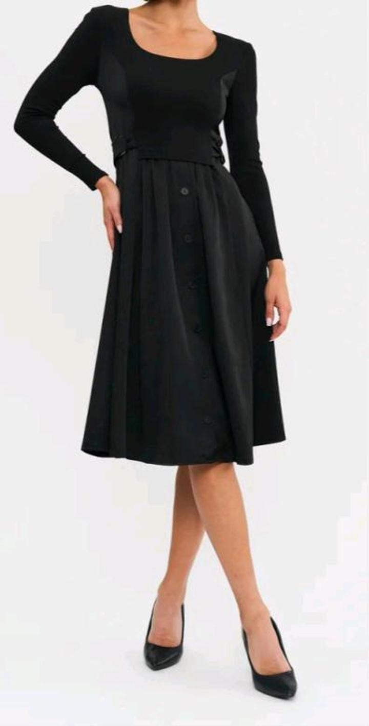 Чёрное офисное платье,фирма На выход Размер 44. Длина миди. Боковой замочек+ пояс- утяжка (с боков) Артикул: 587506