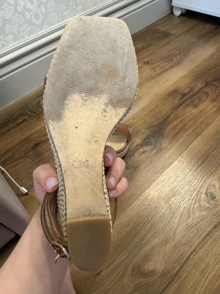 Легкие босоножки на танкетке,36 размер,идеальное состояние,есть небольшое загрязнение на левой Артикул: 587508