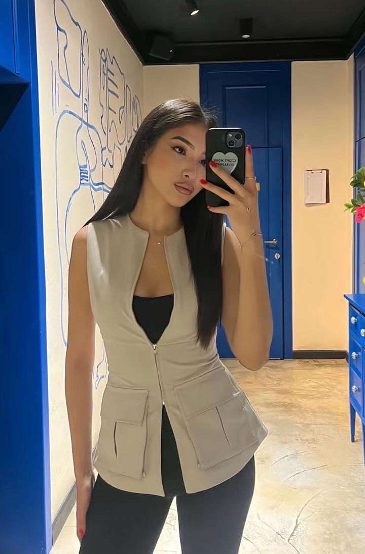 Модель приталенного кроя на молнии, без воротника, что придает образу современный и минималистичный вид. Главная фишка — объемные накладные карманы карго, которые добавляют стиля. Жилет отлично держит форму и станет идеальным дополнением к многослойным образам. Можно носить как самостоятельно, так и поверх рубашек или водолазок. Абсолютный тренд сезона. Артикул: 587523