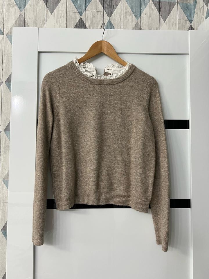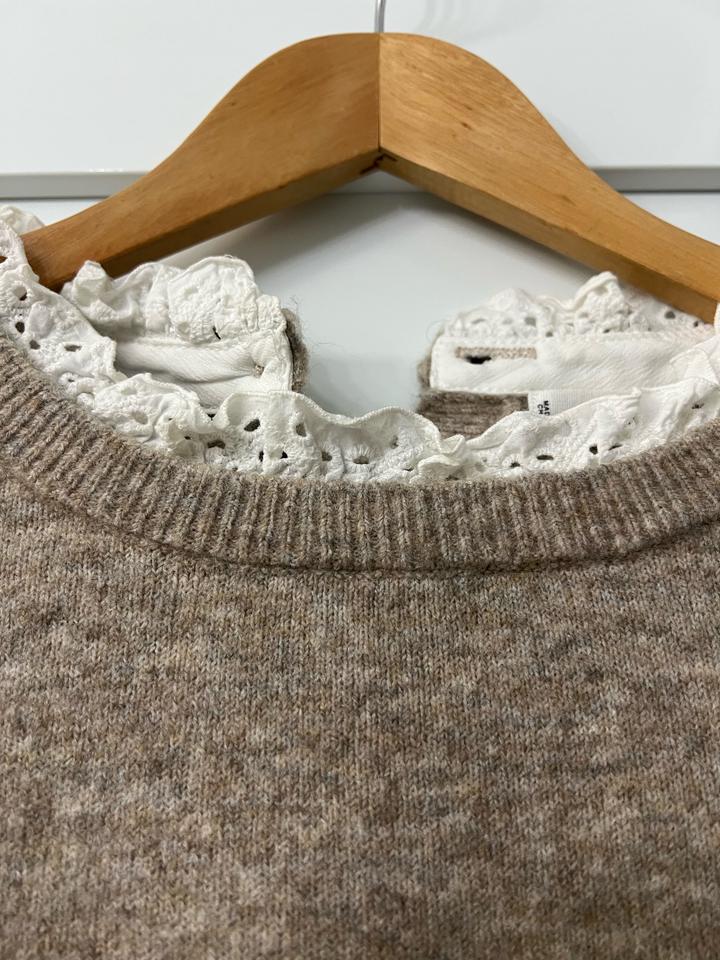 - Бежевый свитер - На горле кружевная ставка - Mango - Шерсть - Размер М Артикул: 587535