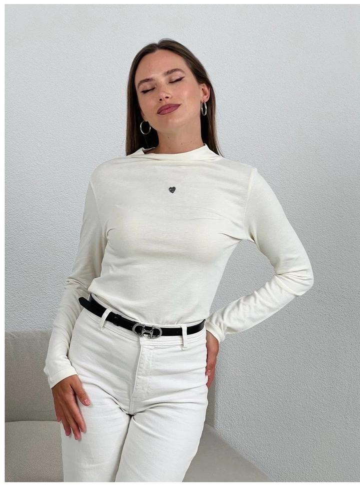 Базовый Лонгслив из хлопка Воротник стойка Цвет молочный Артикул: 587612