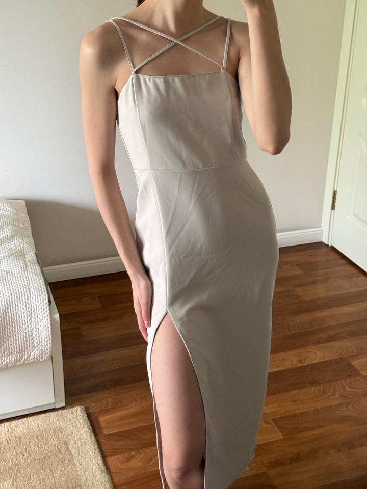 бежевое платье с вырезом на левой ноге, новое Артикул: 587638