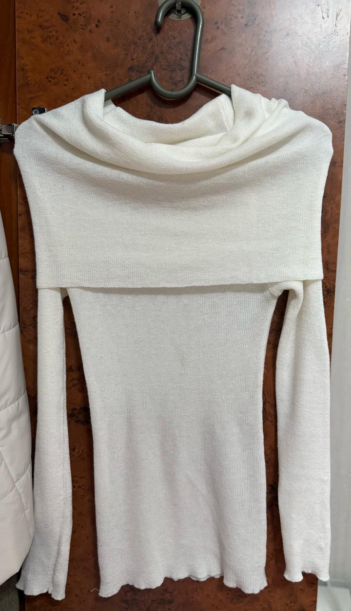 Белая кофточка лодочка, хорошее состояние, размер можно на М ку, ткань мягкая, тянется Артикул: 587643