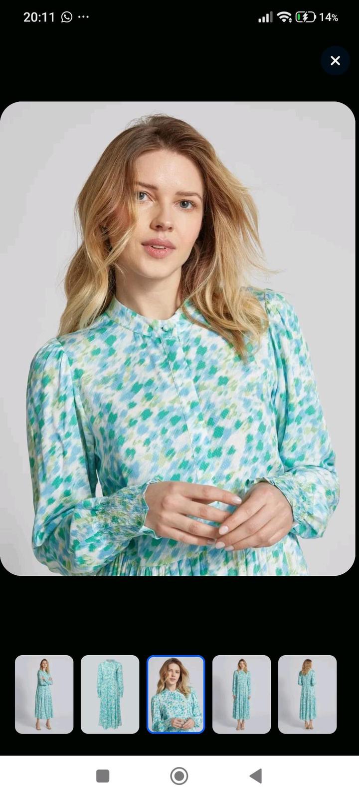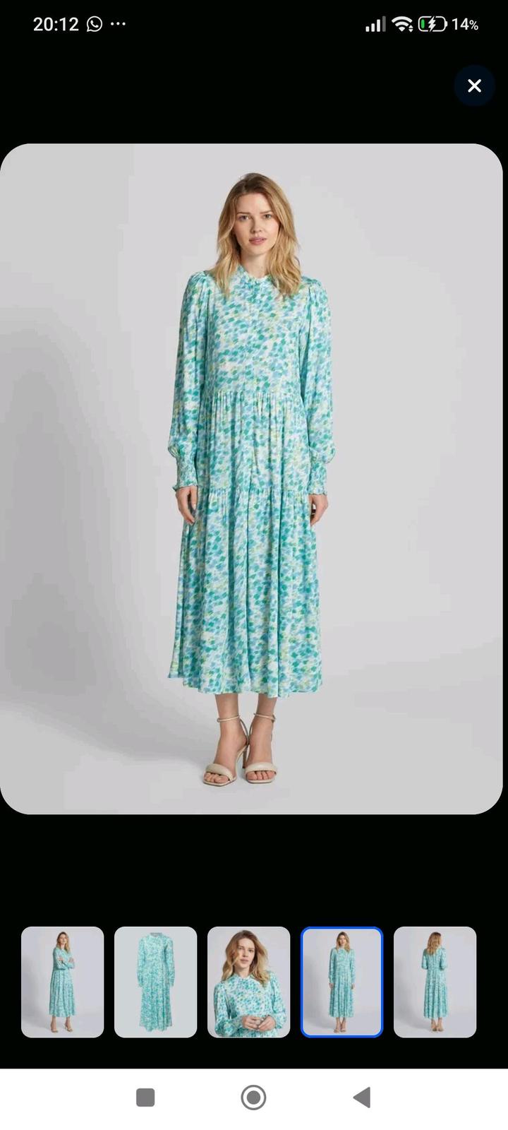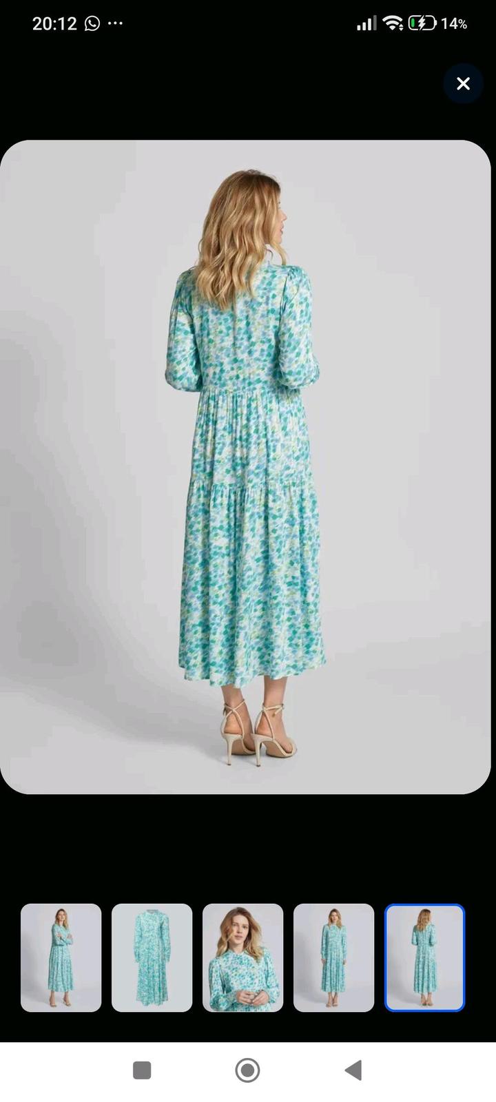 Жаккардовое вискозное платье ,свежий цветочный принт создает весеннее настроение. Платье с маленьким круглым вырезом, скрытой планкой на пуговицах и многослойным А-силуэтом. Вискоза 99%.Покупали на распродаже в Италии. Артикул: 587657