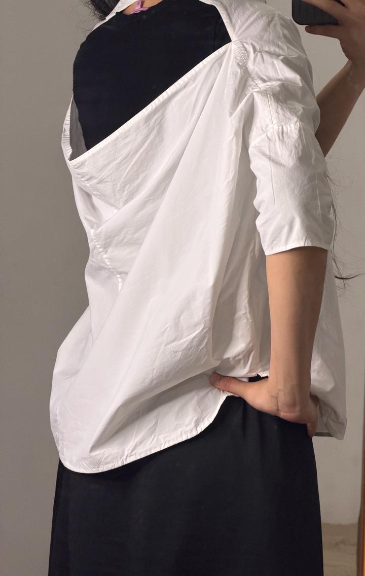 Белая рубашка COS , фасон интересный , спинка открыта ) размер 42-44, классная ,оверсайз фасон Артикул: 587659