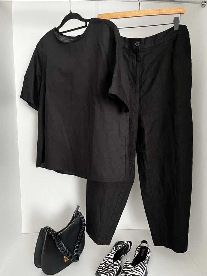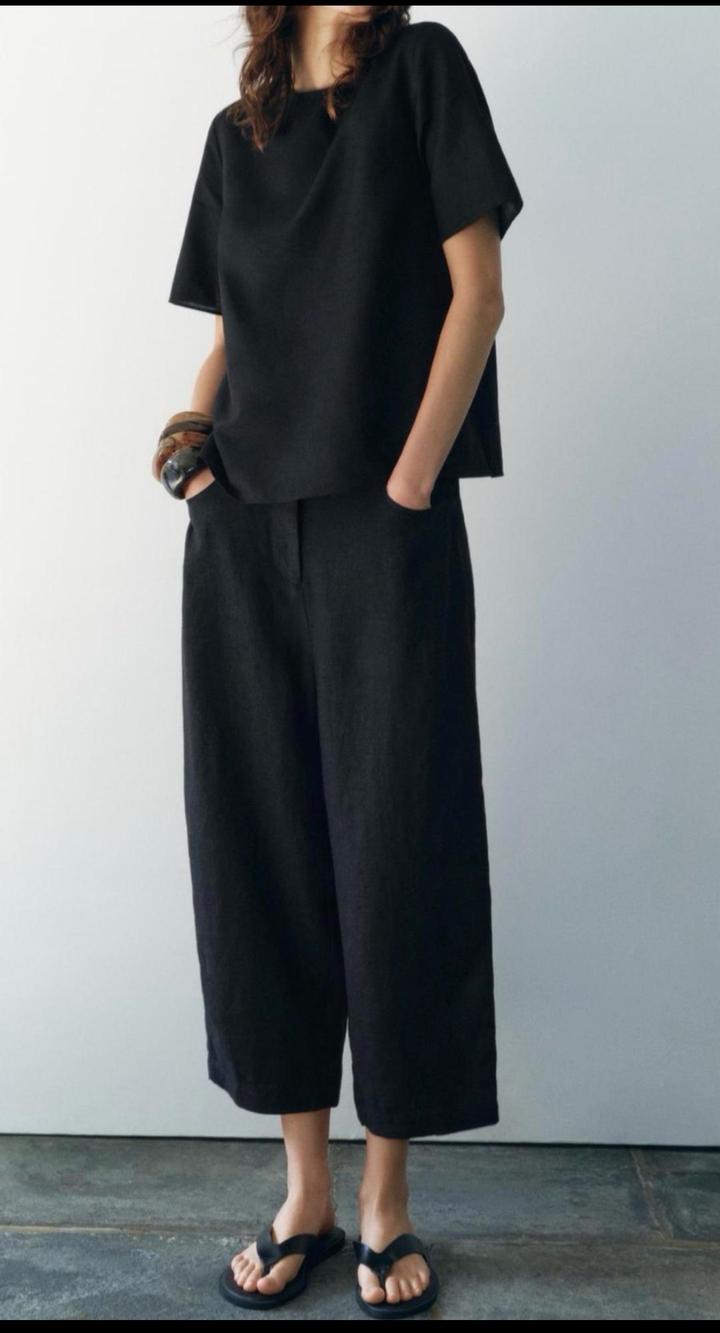 Покупался отдельно, но смотрится как костюм🖤 ZARA, состав лён +хлопок🖤 футболка размер L, брюки XL 🖤 Артикул: 587689