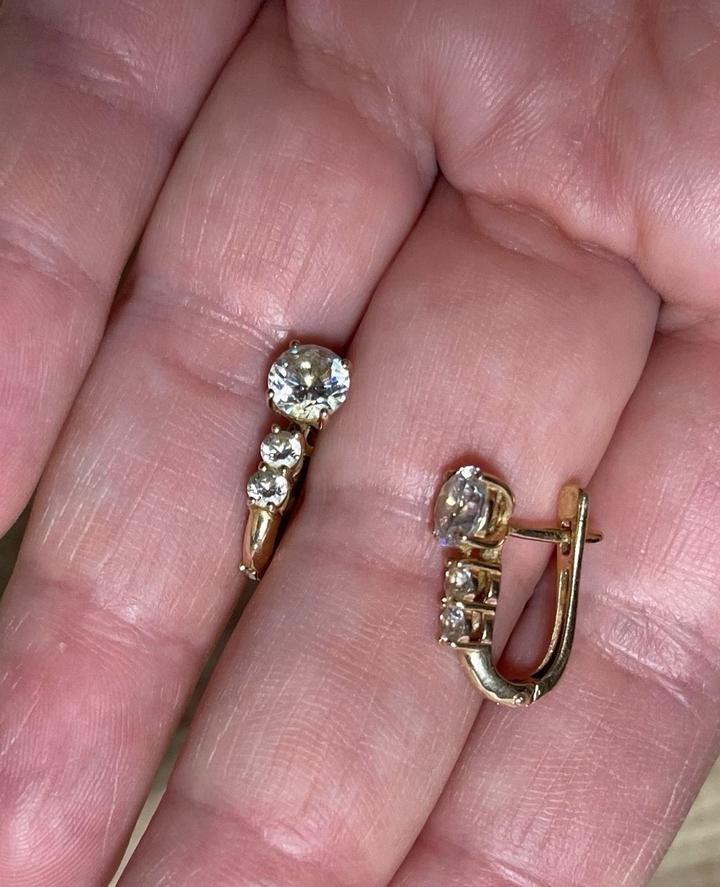 Серьги золотые, 585 проба, с фианитами. Артикул: 587702