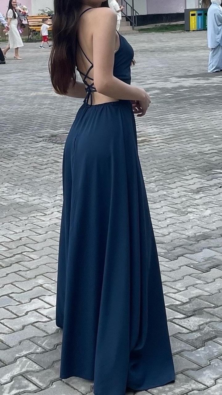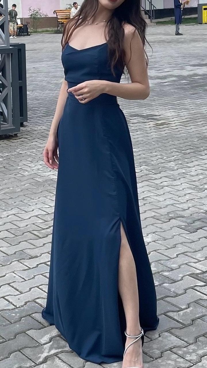 Элегантное вечернее платье в глубоком синем оттенке 💙 Лёгкий струящийся силуэт, тонкие бретели и высокий разрез подчёркивают фигуру и добавляют образу изящности. Идеально для вечера, свиданий и особых случаев Артикул: 587720