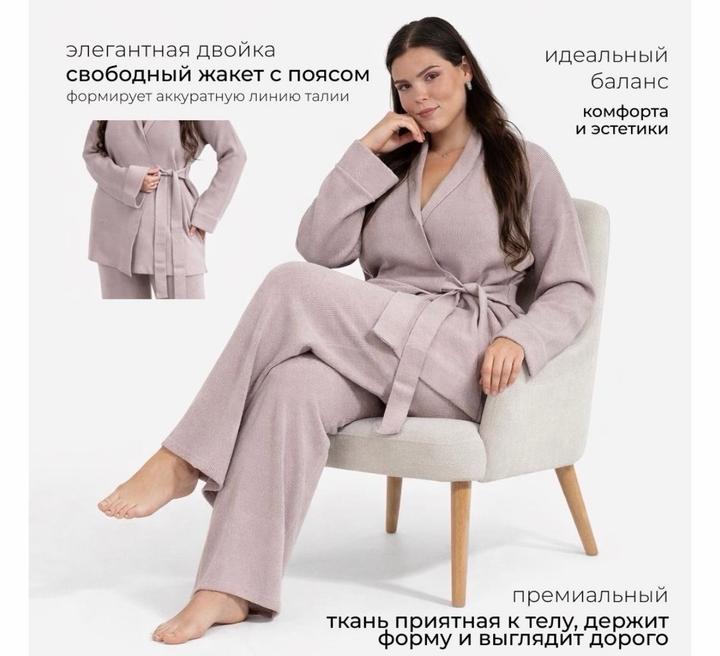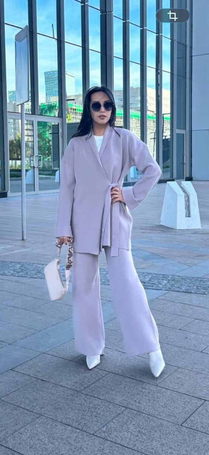 Брючный комплект в стиле кимоно На завязках Брюки на резинке За счет завязки и резинки комплект хорошо сядет на любую фигуру Цвет сиреневый Производство Турция Артикул: 587741