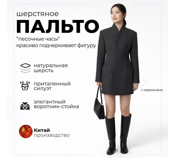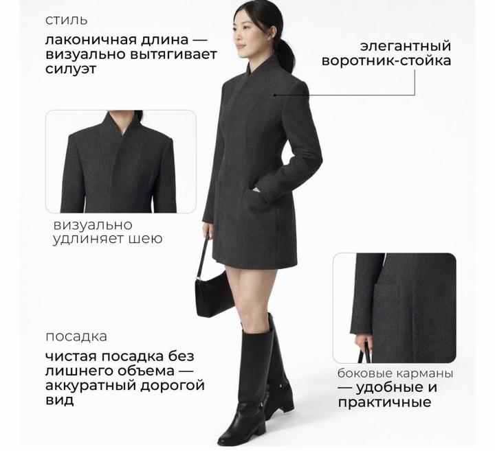 Стильное пальто в стиле Either песочные часы Приталенный силуэт На пуговицах скрытых Артикул: 587761