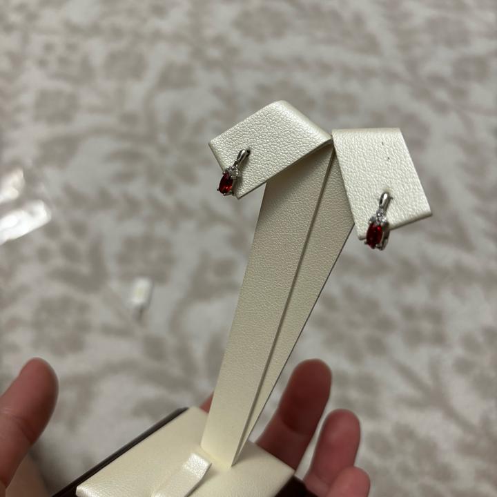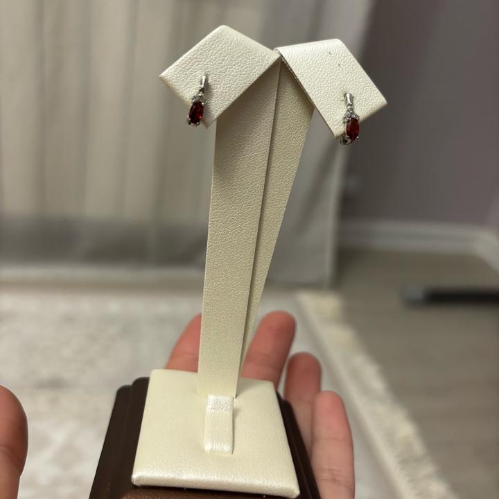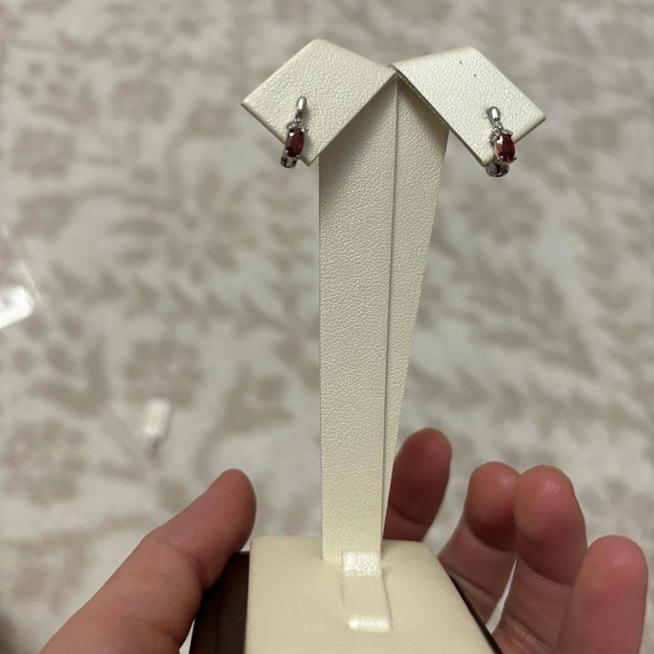 Серебряный серьги детские 925 проба камень гранат, английский замок-