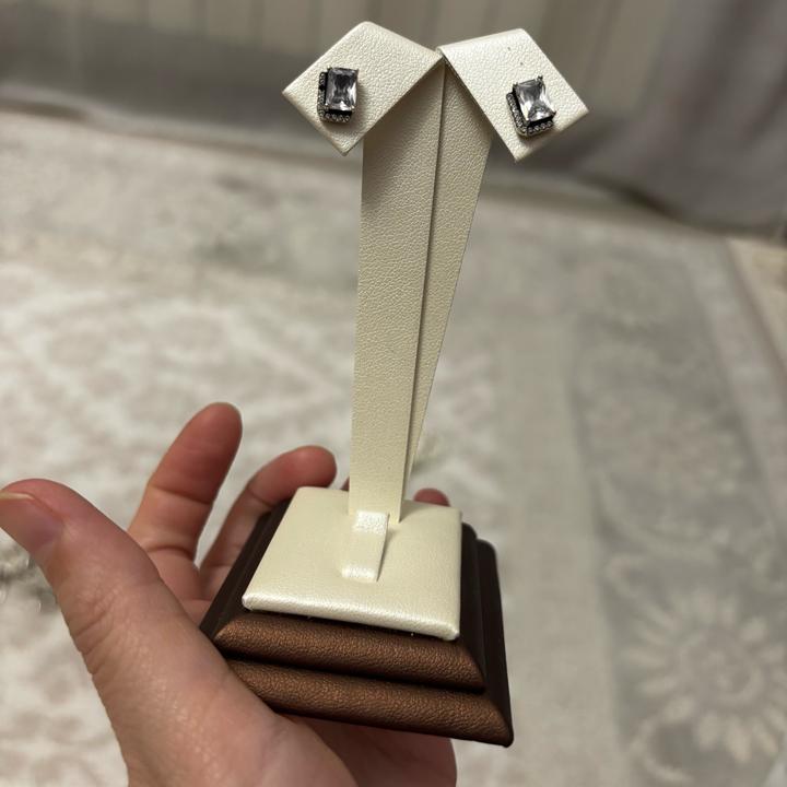 925 сынамасы бар, багет формасында жасалған, қараймайтын, таққан кезде аллергия бермейтін жоғарғы сападағы таза күмір сырғасы Артикул: 587801