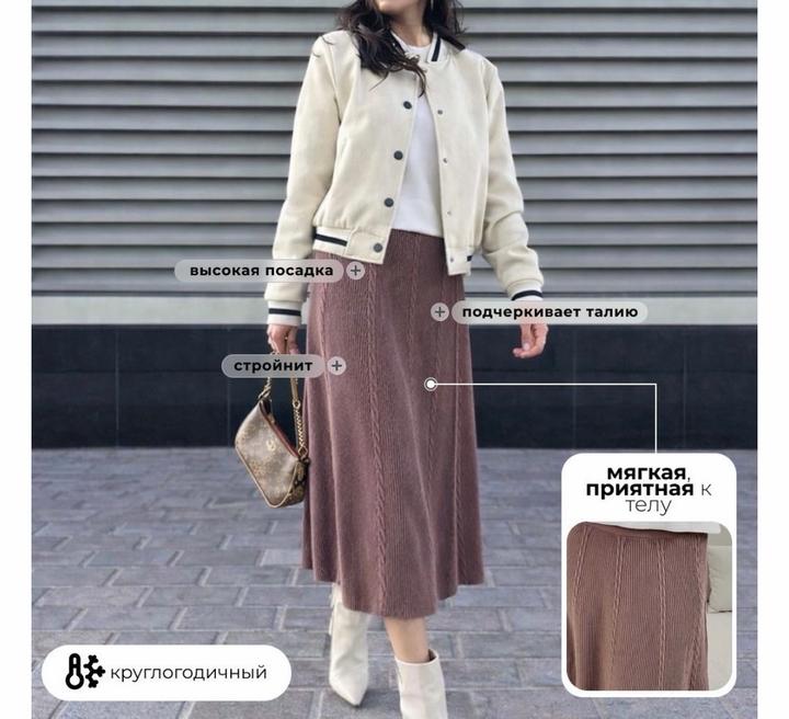 Базовая трикотажная юбка миди Материал плотный Хорошо держит форму На резинке Артикул: 587860