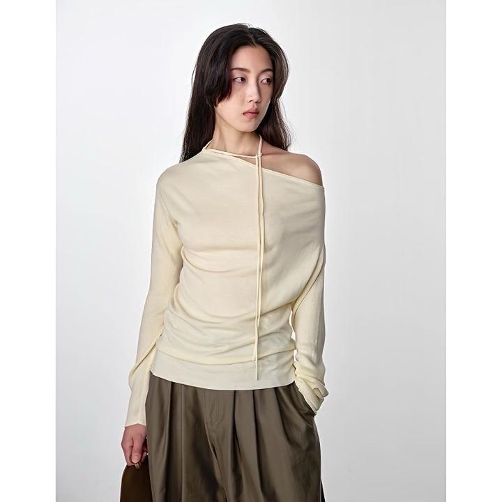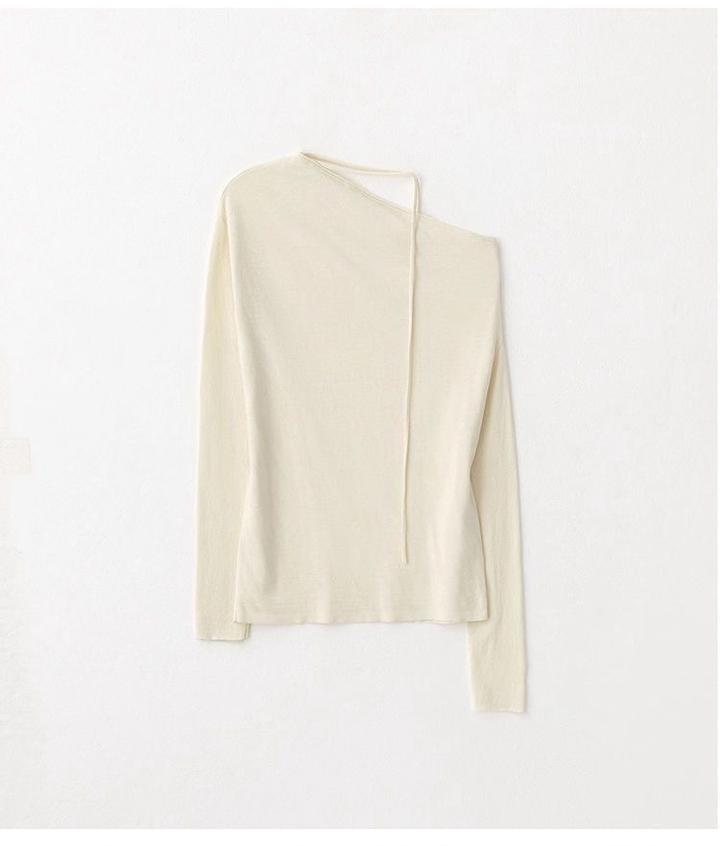 Мягкий и приятный к телу свитер на одно плечо, в сливочном цвете Артикул: 587927