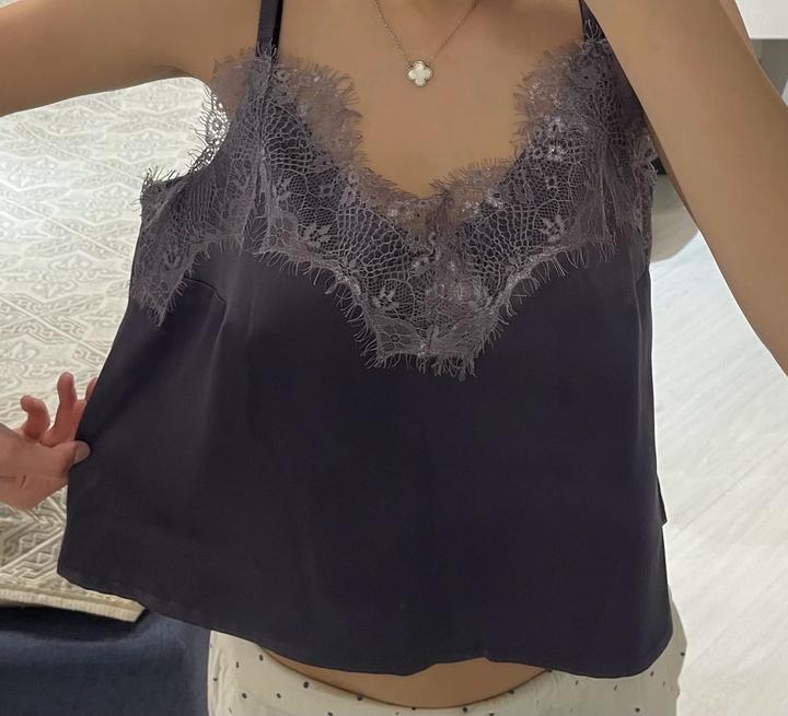 Трендовый Кружевой топик в красивый фиолетовом цвете Артикул: 587950