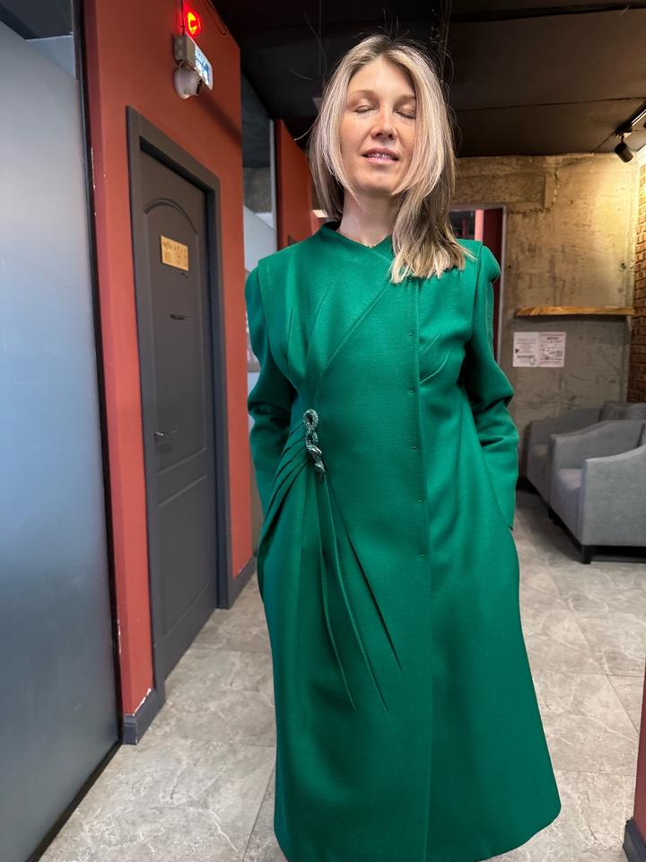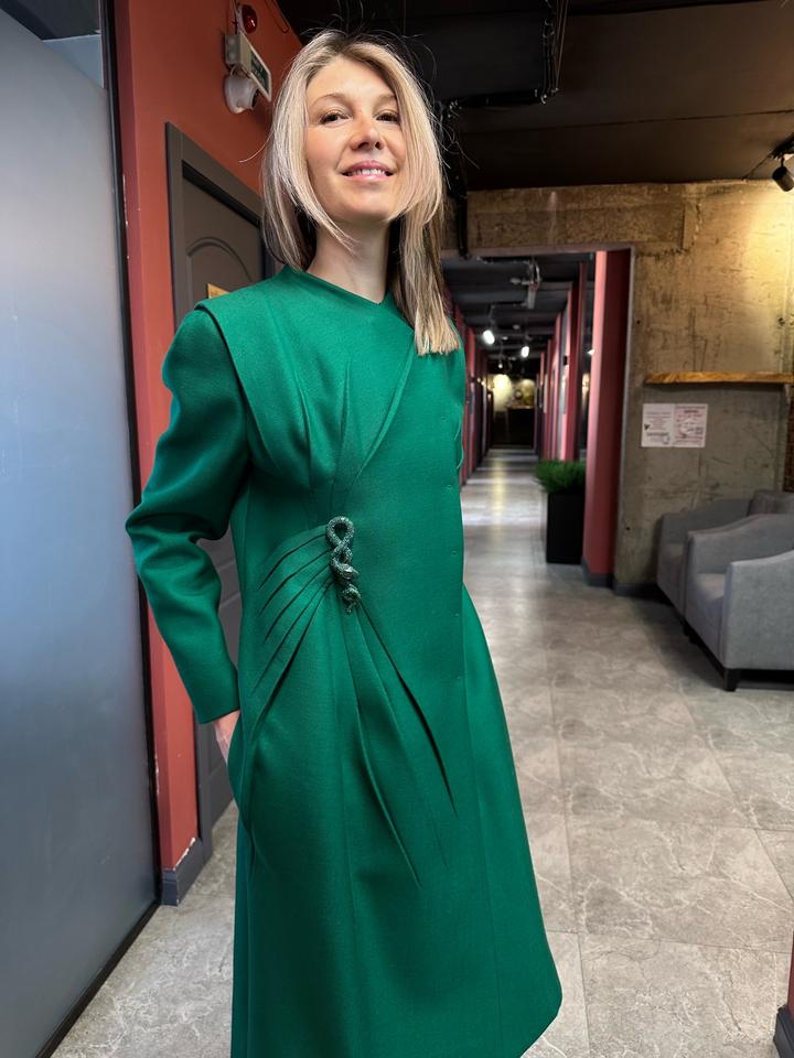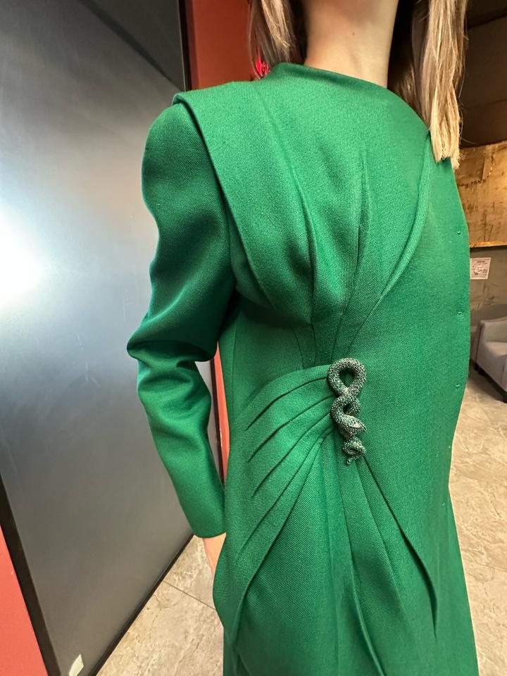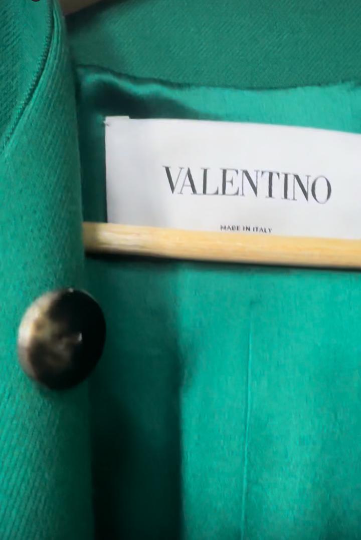 Зеленое женское пальто от Valentino — роскошь, сочетающая в себе итальянское качество, элегантность и смелые дизайнерские решения. Декорировано змейкой со стразами, идеальное качество! Размер 44-46! Артикул: 588024