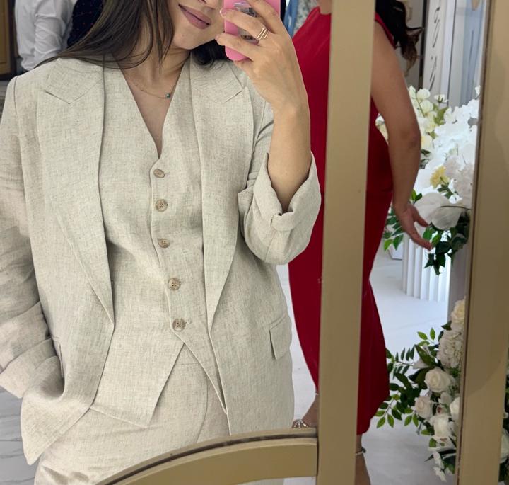 2 рет кана киылген. Пиджакты болек, жакет шалбарын болек кие аласыз Артикул: 588093